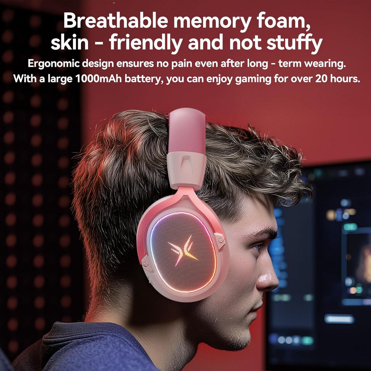 TAGRY K3 2.4GHz Wireless Gaming Headsets 7.1 Surround Sound Bluetooth Headphones 70H Playtime ENC Noise Cancelling Over Ear Game Headphone with Mic