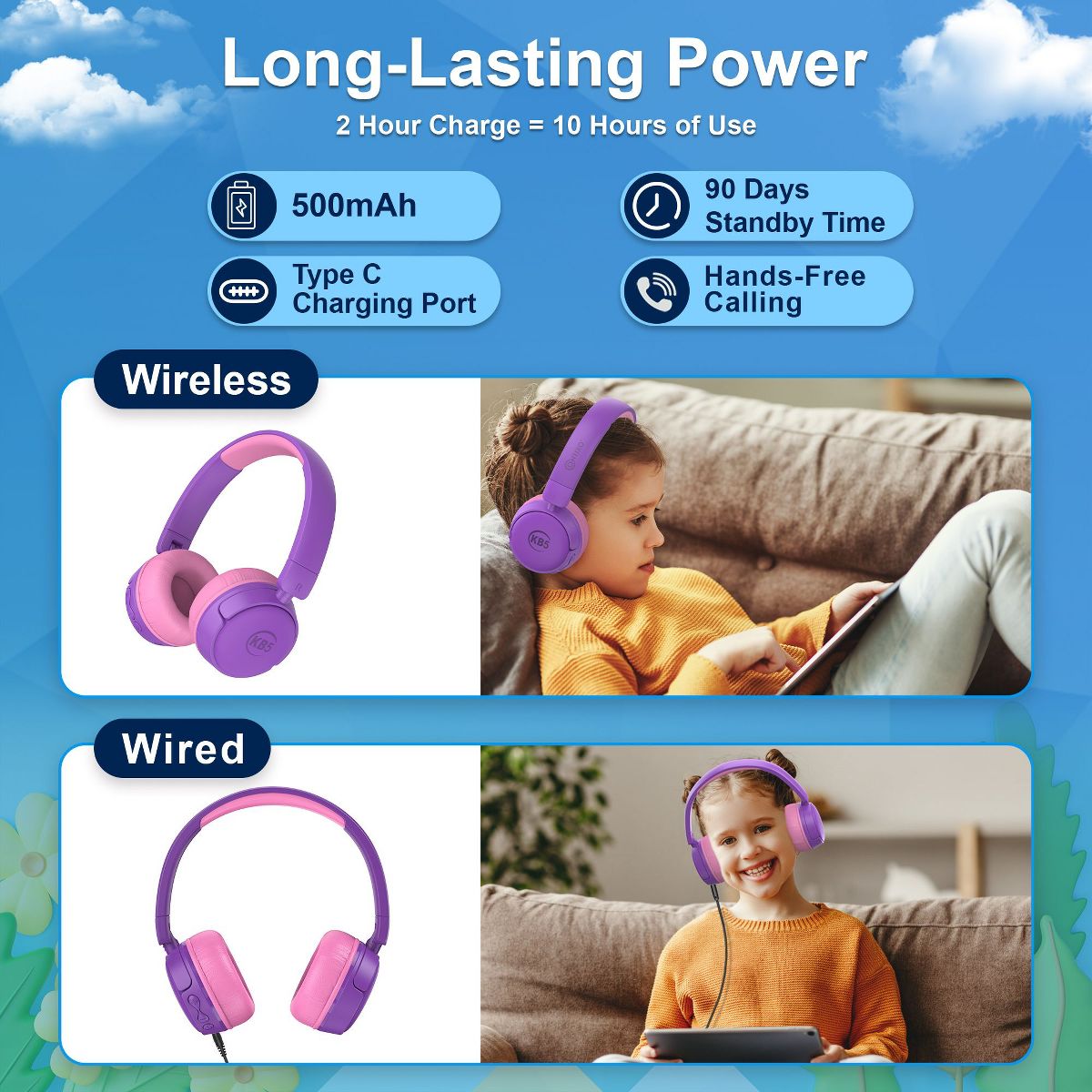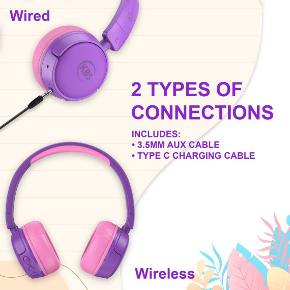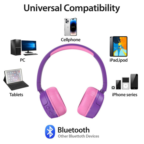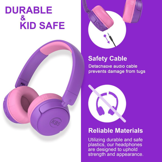 Contixo KB05 Kids Bluetooth Wireless Headphones -Volume Safe Limit 85db -On-The-Ear Adjustable Headset (Purple)