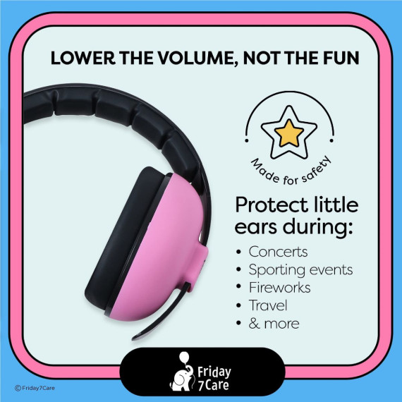 Friday 7Care Baby Headphones - Baby Ear Protection | Baby Noise Cancelling Headphones for Ages 0-36 Months, Pink