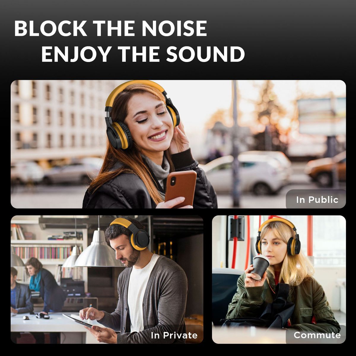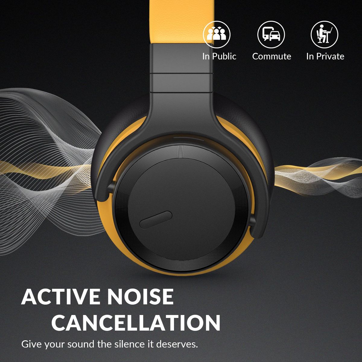 MOVSSOU E7 Active Noise Cancelling Wireless Bluetooth Headphone Yellow