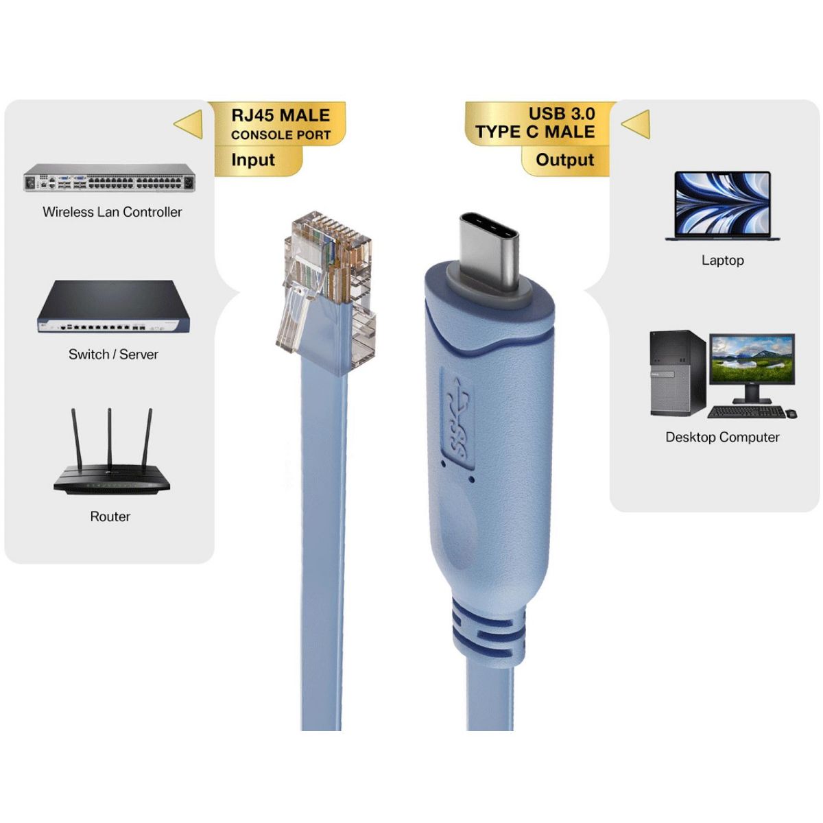 Connect Your Modern Devices to Legacy Networks: This 10ft Cisco Console Cable provides a reliable connection between your USB-C equipped devices (like laptops or tablets) and older network equipment with RJ45 console ports. Ideal for IT professionals, network administrators, and technicians who need to manage legacy routers, switches, and other network devices.