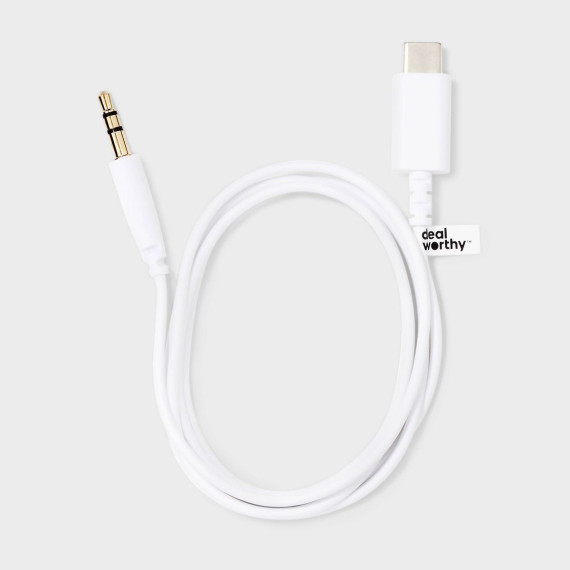 3' USB-C to AUX Cable - dealworthy™ White: Male-to-Male Adapter, 3.5mm Jack Connection