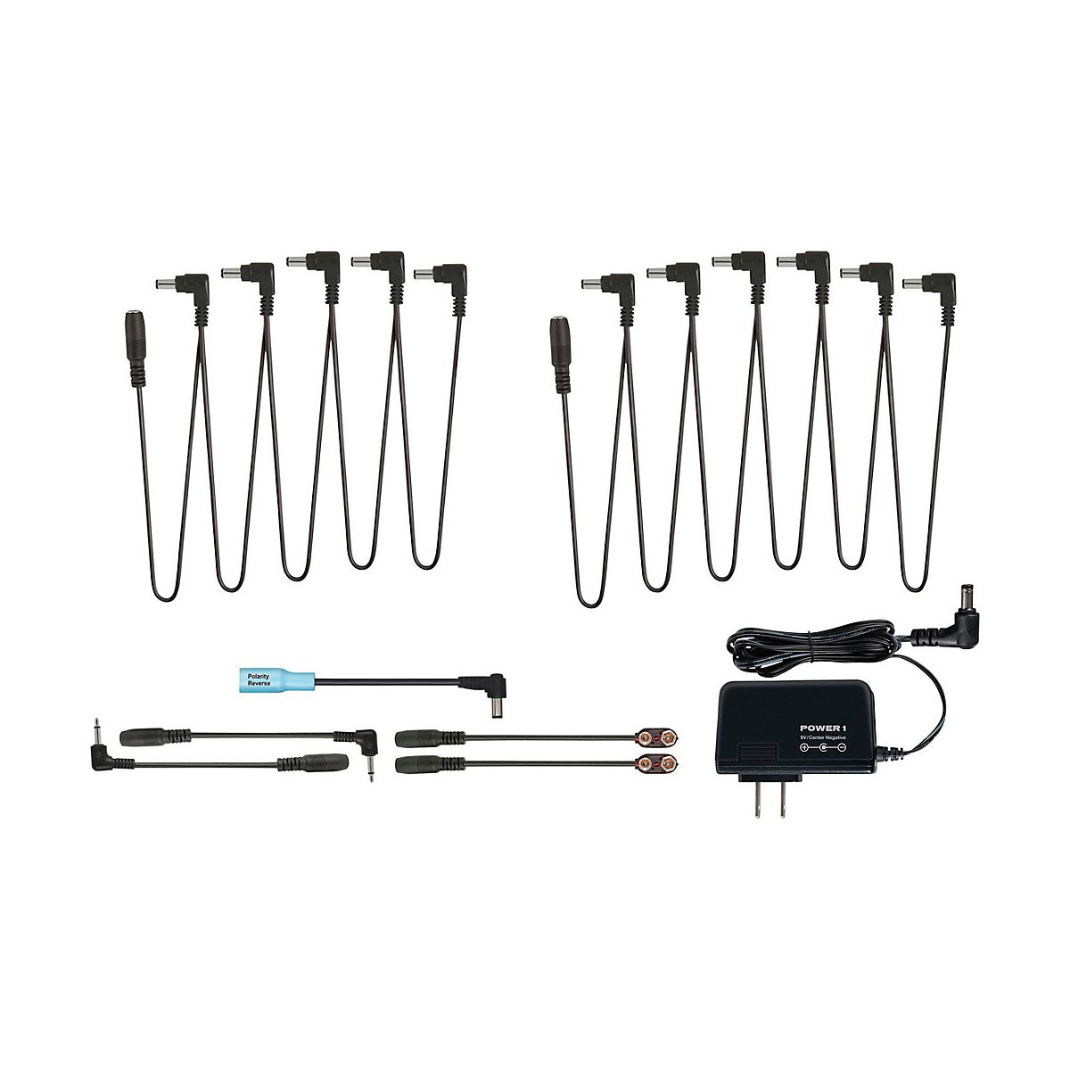 The Acoustic® Power1c is the ideal solution for guitarists, bassists, DJs and other musicians who need a simple, flexible, and cost-effective solution to power multiple 9V pedals from a single power outlet. With 2000mA of current and a heavy-duty 10ft power cable, the Power1 can safely power a variety of 9V effect pedals (from 20mA to 400mA each) The Power1C includes the PowerChain10 Daisy Chain kit which links power to up to 10 pedals. The kit includes a 6-outlet and a 5-outlet daisy-chain cable that can be combined for up to 10 pedals, or used separately utilizing fewer pedals or a smaller board. Includes two 9V battery adaptors, two 3.5mm (1/8”) adaptors, and a reverse-polarity adaptor.