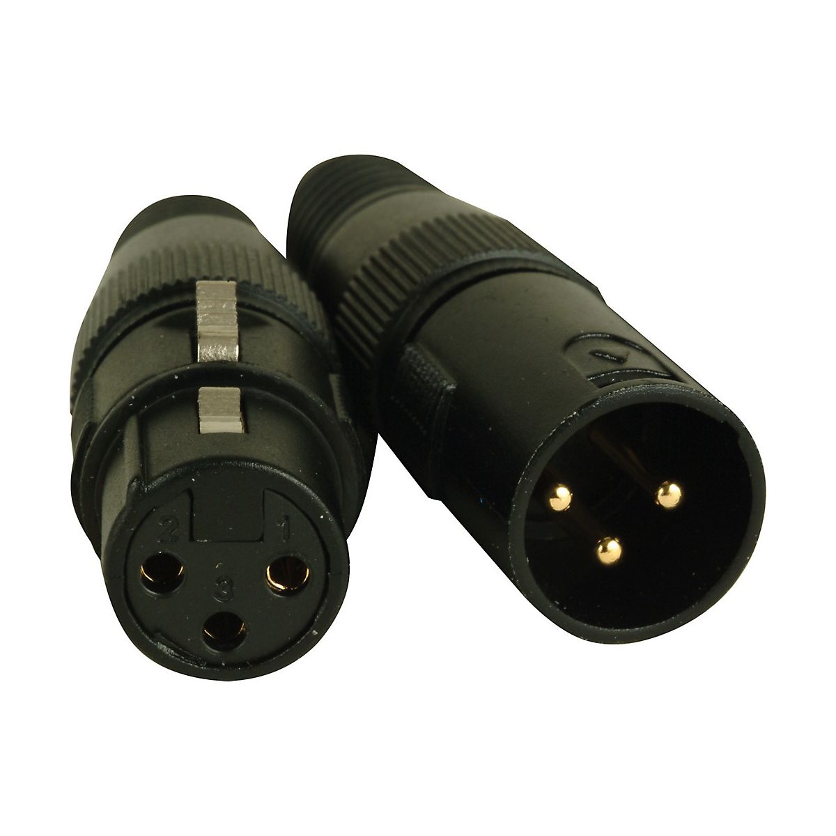 3-pin DMX connectors--one male, one female--with gold pins.