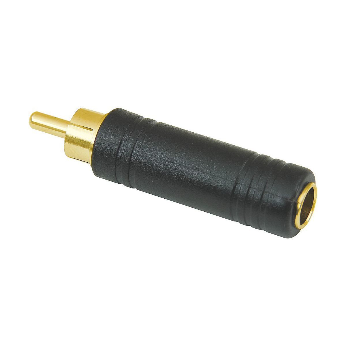 Attaches 1/4" male to RCA female.