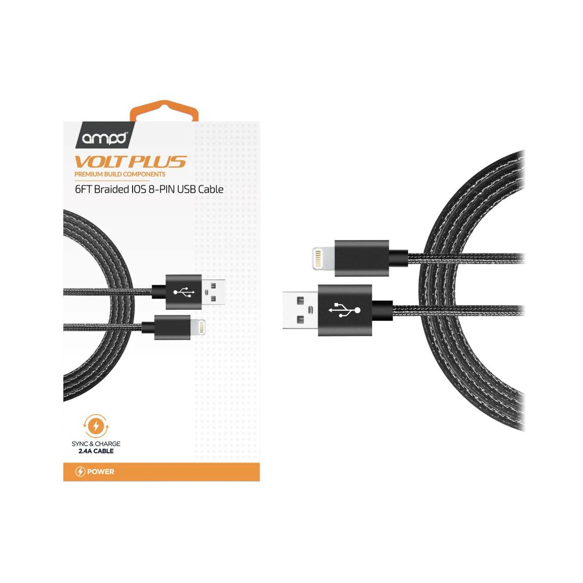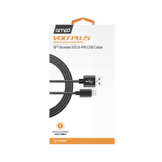 Ampd - Volt Plus Usb A To Apple Lightning Braided Cable 6ft - Black