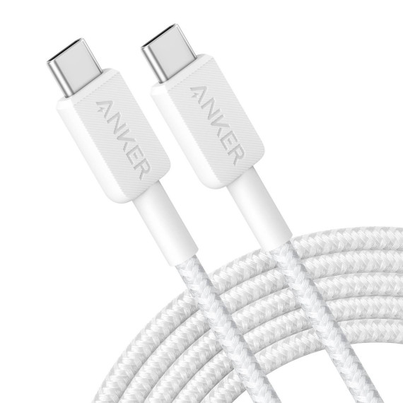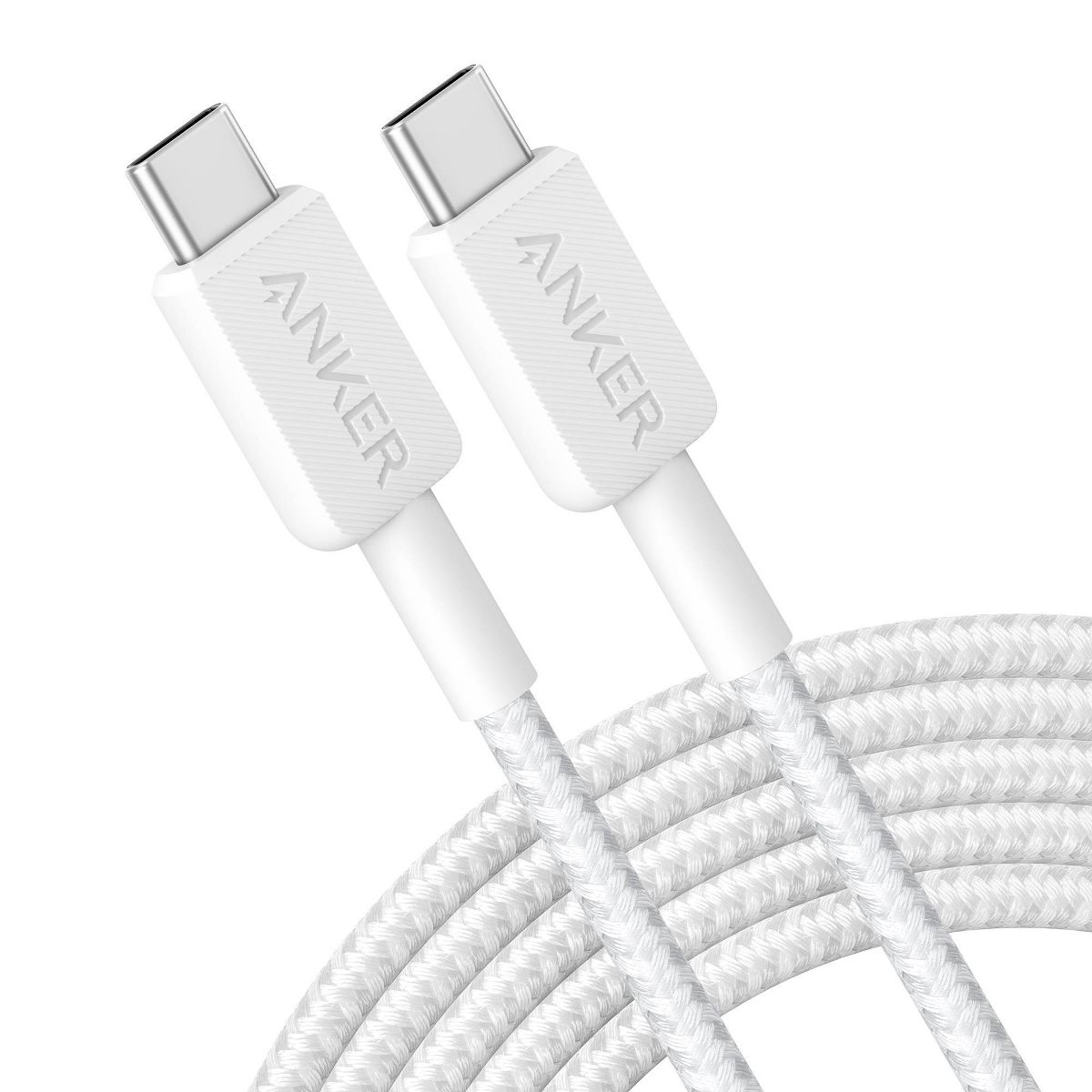 Anker 10' 60W Braided USB-C to USB-C Max Fast Charging Cable - White: Male-To-Male Cord