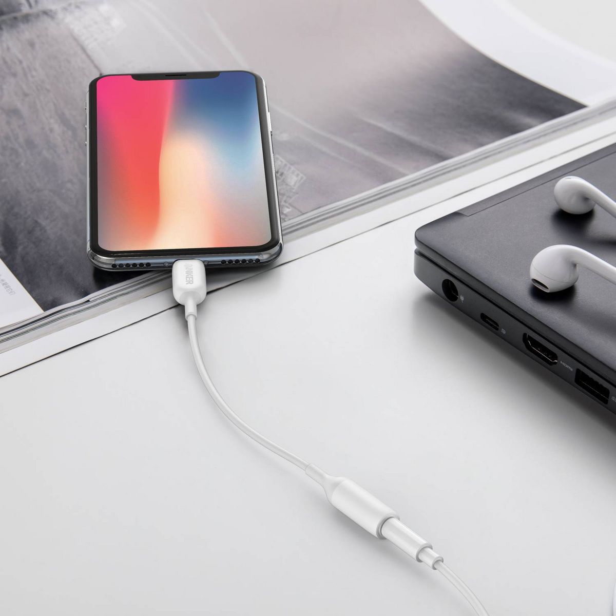 Anker 5" PowerLine Lightning to 3.5mm Audio Adapter - White
