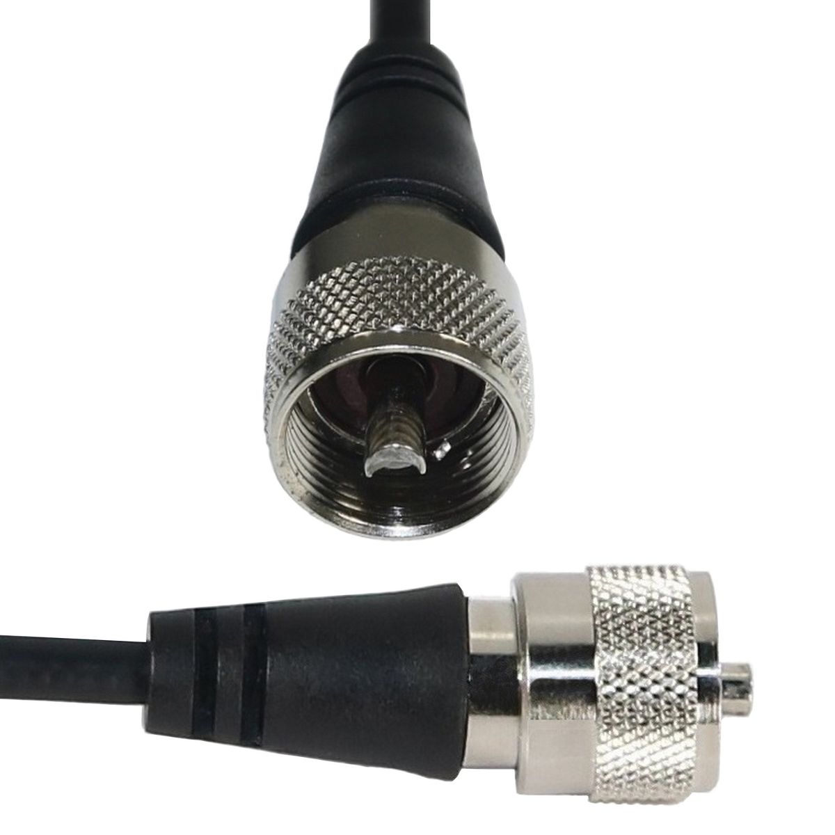 This Browning® 18-ft. super-thick, high-power, low-loss double-shield RG8X CB antenna coaxial cable is made from 95% bare copper braid, stranded copper center conductor, and a foil shield. The BR-8X-18 features foam insulation, a black PVC jacket, and a UHF male PL-259 connector with molded strain relief installed on each end.