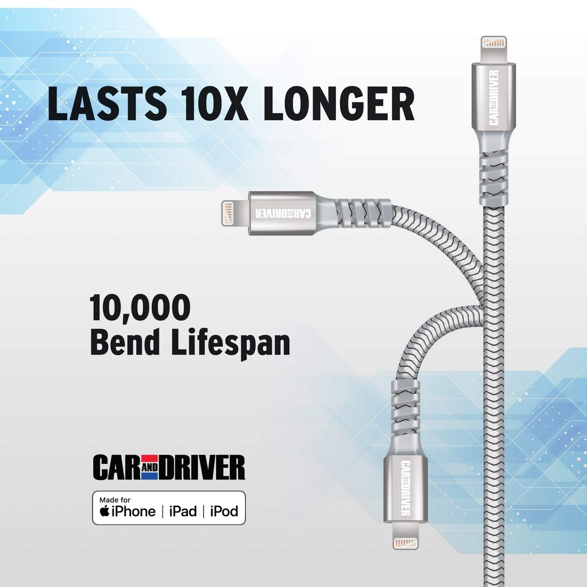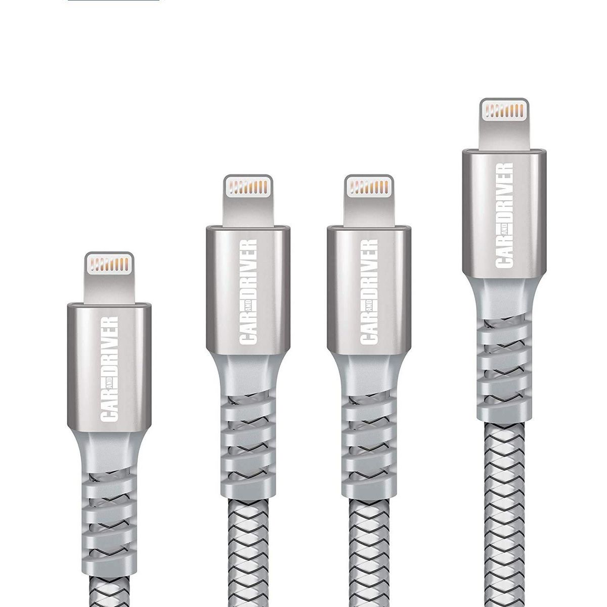 CAR AND DRIVER USB to Lightning Connector, 4 Braided Silver Cables silver 1