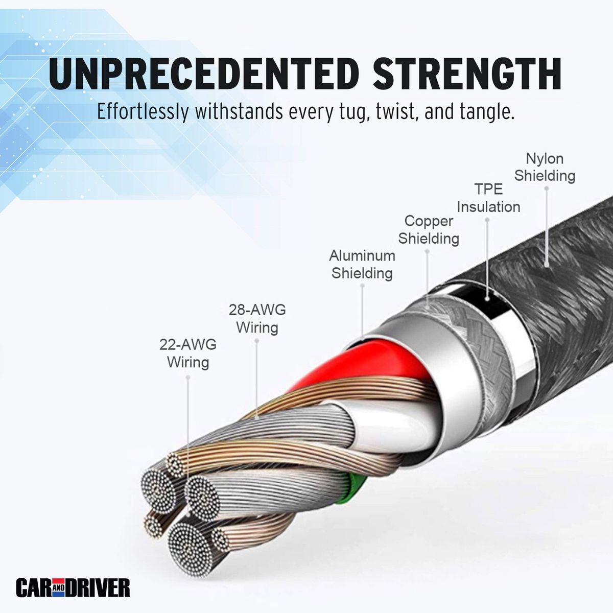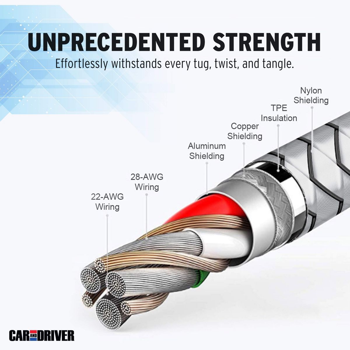 - FROM ZERO TO SIXTY CHARGE AND SYNC: Get to the finish line faster with Car and Driver's cables. Apple MFI-certified lightning cables with superior Speed.