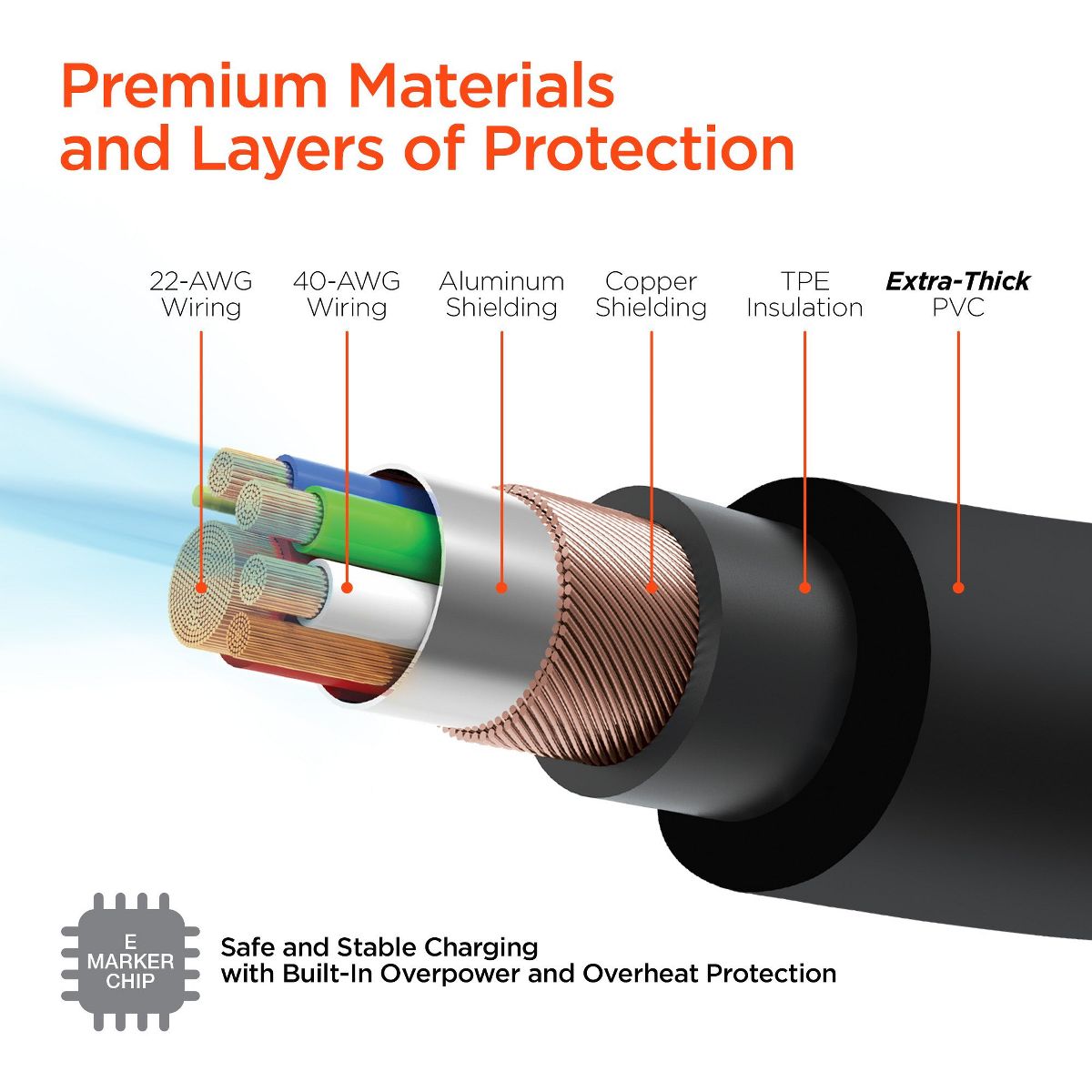 • E-Marker Chip for Safe Charging and High-Speed Data Sync