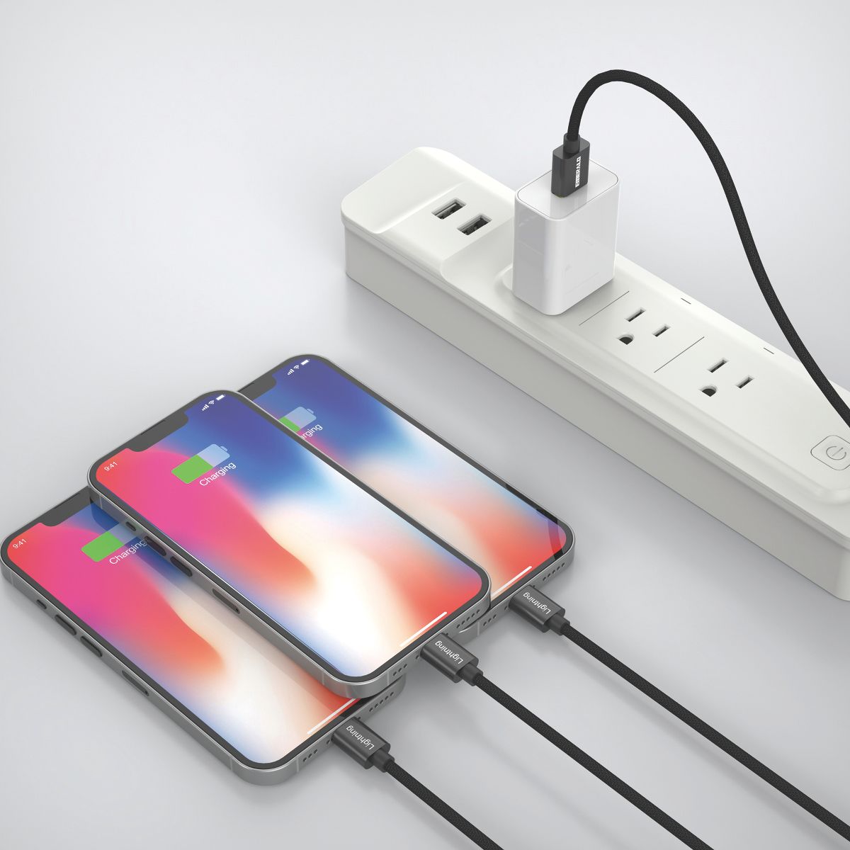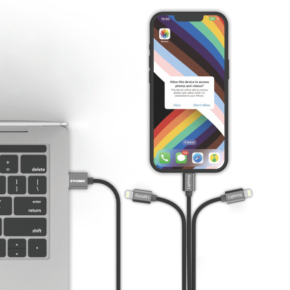 Simplify your charging setup with this versatile 6ft 3-in-1 USB-A Cable. Featuring 3 Lightning connectors, it lets you charge or sync most Lightning devices. Built with a durable braided design for long life under daily use, this cable delivers fast, reliable charging when paired with a rapid charger. The extra long 6ft length provides flexibility to charge comfortably from any spot at home, the office, or on the go. A color matching velcro tie keeps the cable neat and tangle free for easy storage and travel. Durable, and convenient it’s the only cable you’ll need to keep all your devices powered up.