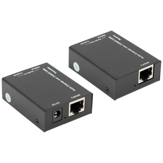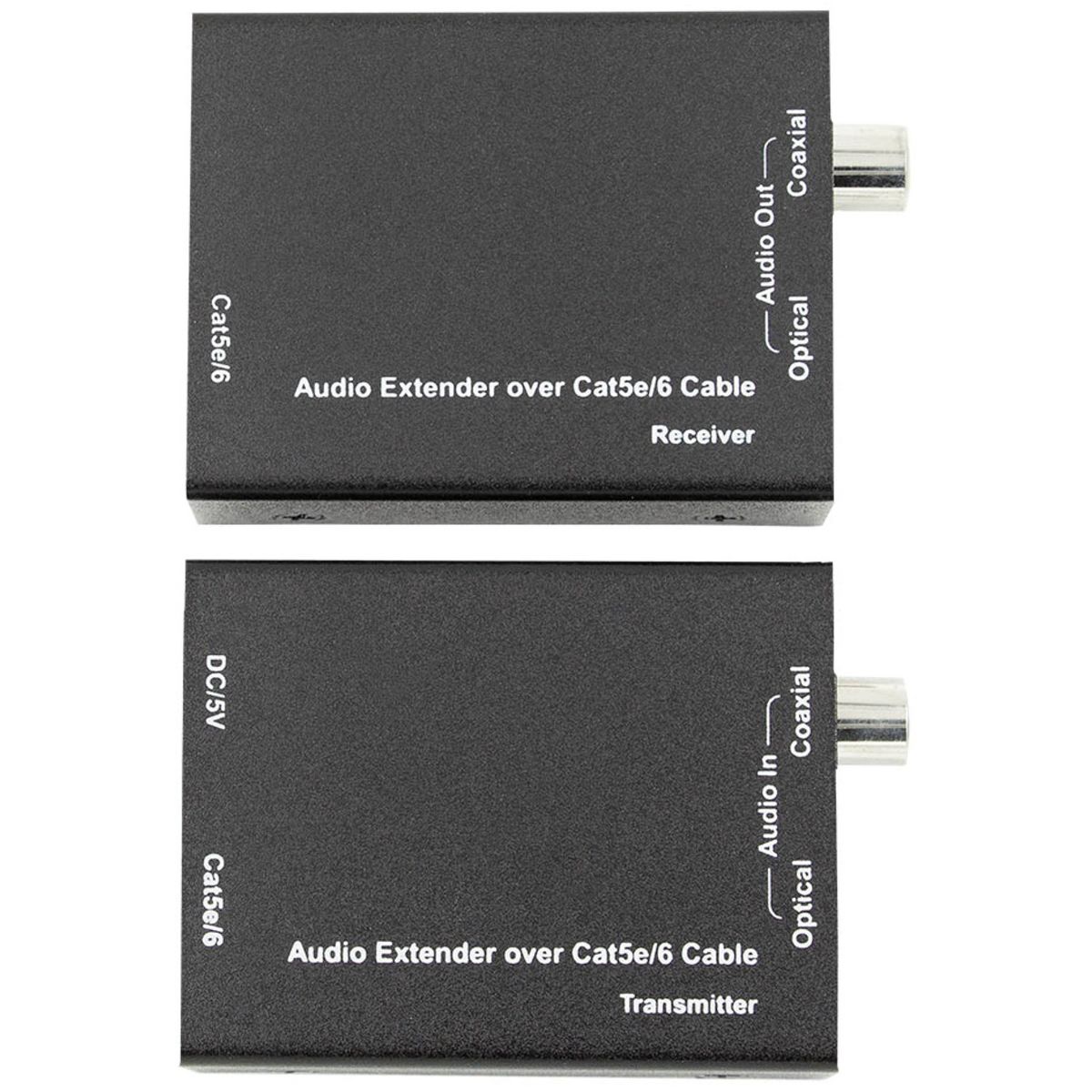 This Ethereal® CS-C5DE CAT-5E CAT-6 Digital Audio Extender is a great way to send digital (optical and digital coax) audio signals over a long distance using Category cable terminated with RJ45s. This is an Active digital audio extender system that provides for extended range multichannel digital audio transmission over a standard CAT-5E/CAT-6 cable, and used in conjunction with optical cables (in/out) greatly reduces the chance of picking up radiated noise from the 110-volt AC lines.
