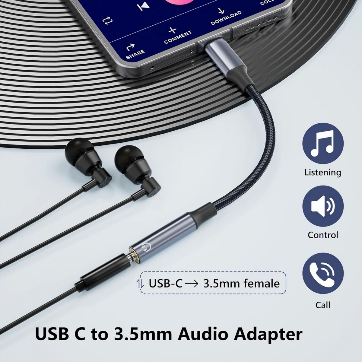 This USB C to 3.5mm adapter allows wired earphone use with Type - C devices without Bluetooth, offers easy stable plug - and - play connection, is compatible with most Type - C gadgets, enables seamless audio transmission, and has a compact portable design for on - the - go use.