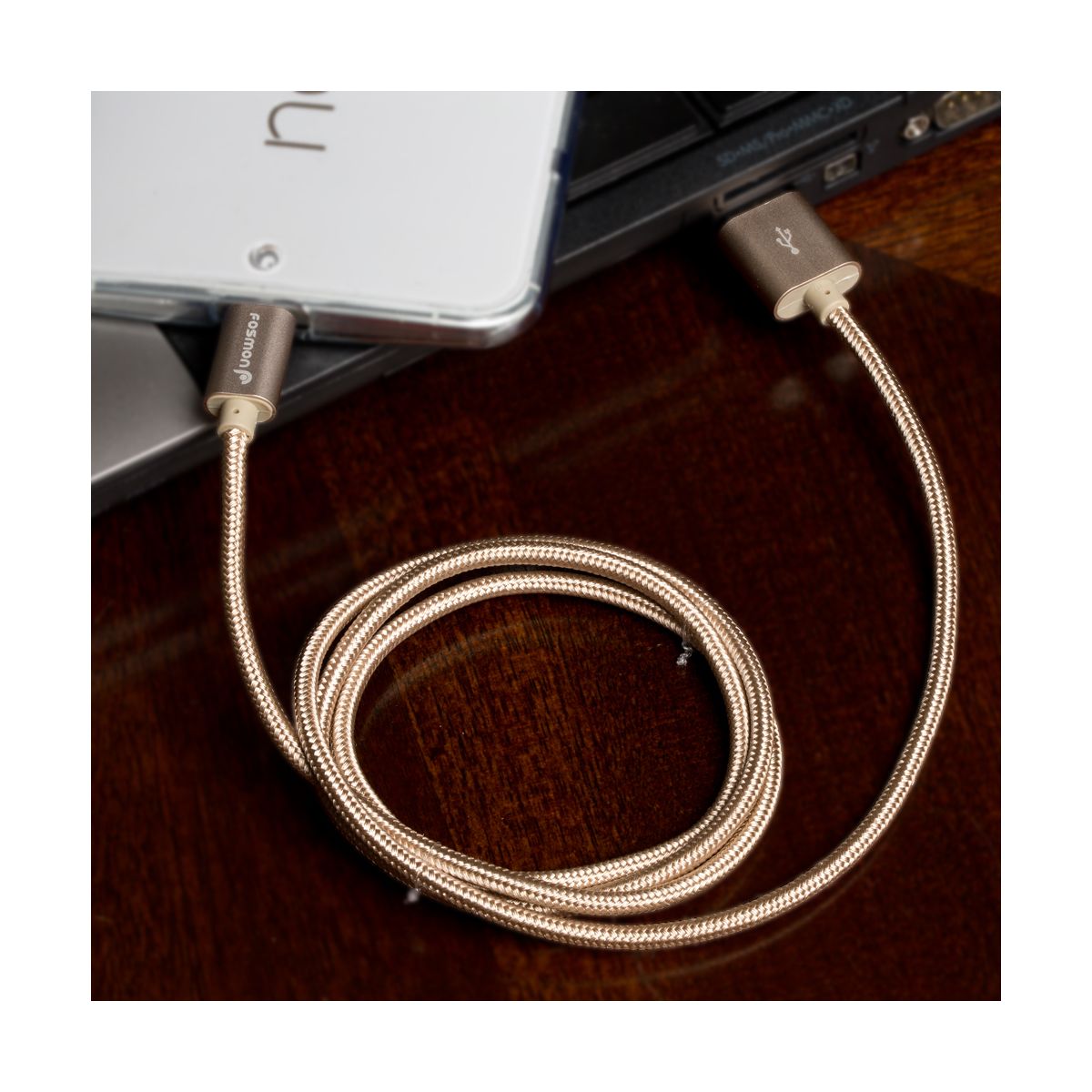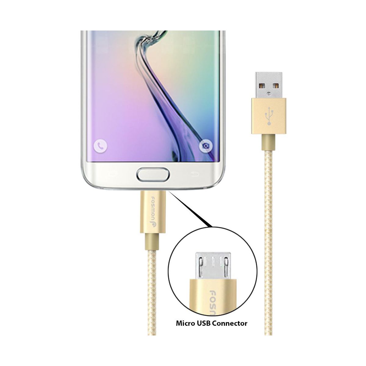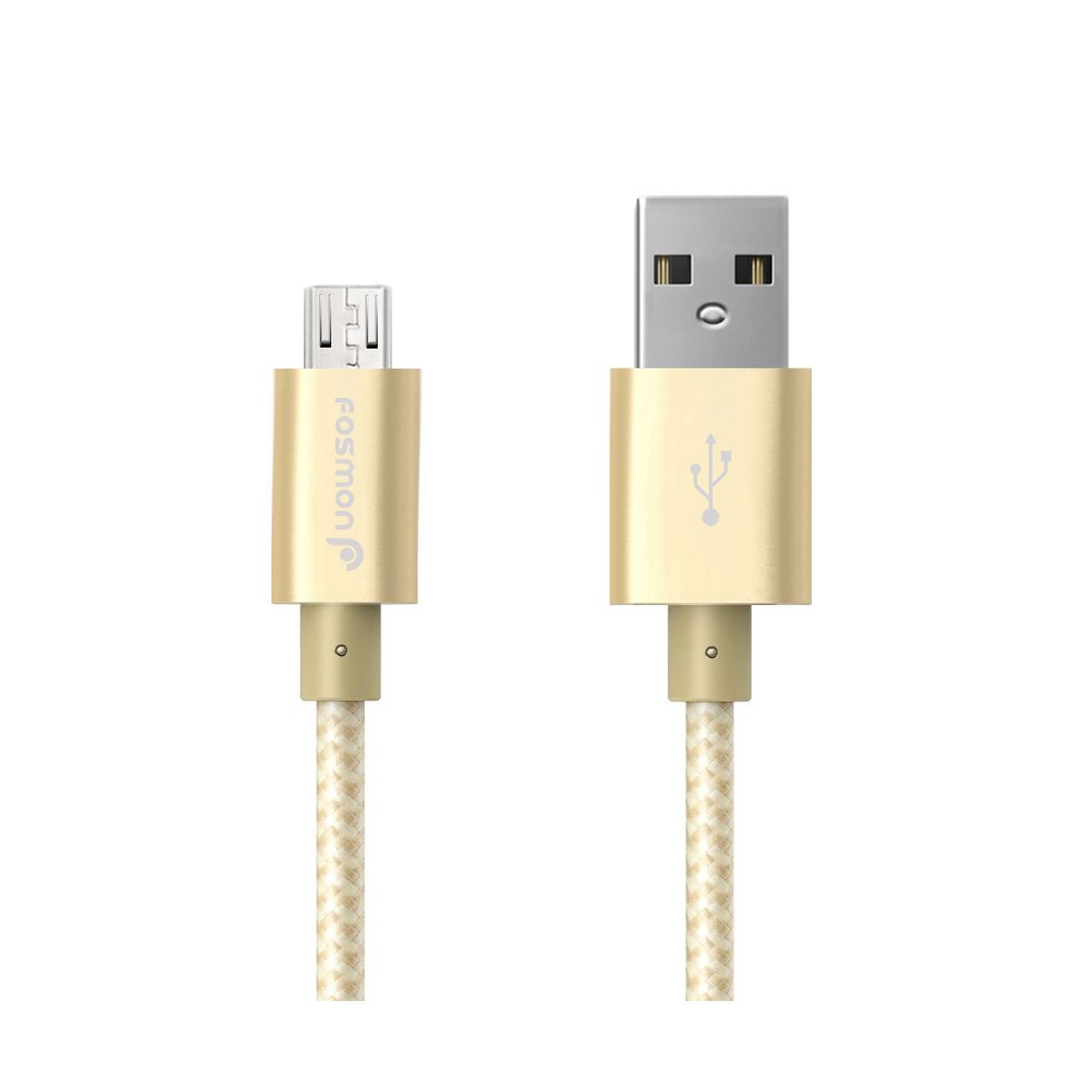 Fosmon 3ft High-Speed Micro USB to USB Sync & Charge Data Cable - Fabric Braided Jacket | Aluminum Housing | 480Mbps Speed, Gold