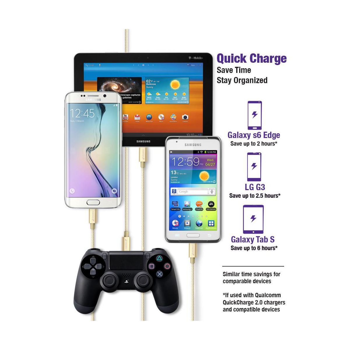Transferring music, videos, images and other files from your mobile device to your computer is easy and quick with a Fosmon micro-USB sync and charge cable. You could do the same from your computer to your device. High-speed USB 2.0 provides fast data speed transfer and also supports 480-Mbps transmission speed. You can also charge your device with the same cable.