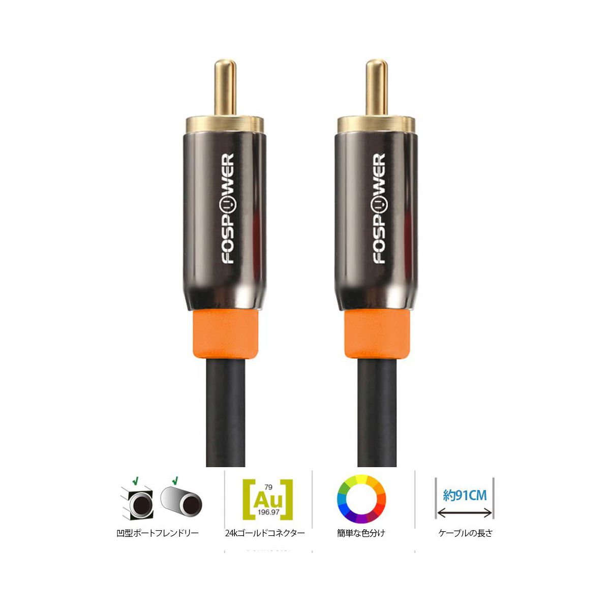 FosPower's premium audio cables are made from high quality 24k gold plated connectors that resist corrosion and reduce tarnish.