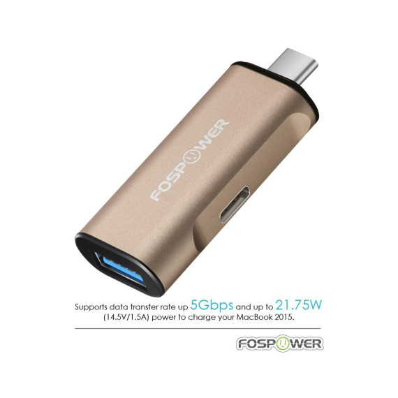 - FosPower USB Type-C Male to USB Type-C Female Charging Port and USB 3.0 Type-A Female Adapter w/ Removable Cap x 1
