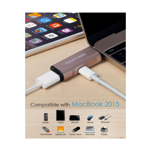 The new Apple MacBook introduces USB Type-C technology to the Apple family's line of products, being the first Apple device to feature a USB type-C port. This device works perfectly with the new MacBook, allowing users to quickly charge it while connecting other devices.