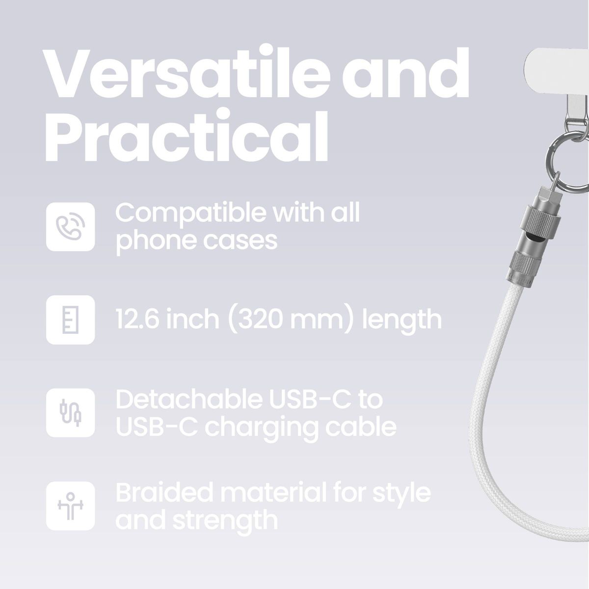 GEMS 12.6" Universal Phone Wristlet USB-C Cable - White