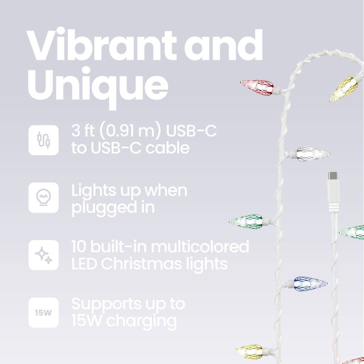GEMS 3' USB-C to USB-C Christmas Lights Cable - White