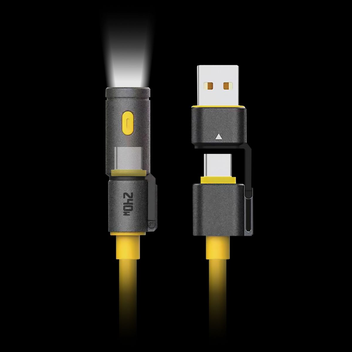 The innovative HELIX FlashCharge 4-in-1 USB-A and USB-C® to USB-C® Flashlight Cable combines practicality and functionality. Not only does it support USB-C® to USB-C® connectivity but it also features a 130-lumen integrated flashlight and a USB-A adapter for added versatility. Get 240-watts of high speed Power Delivery as well.