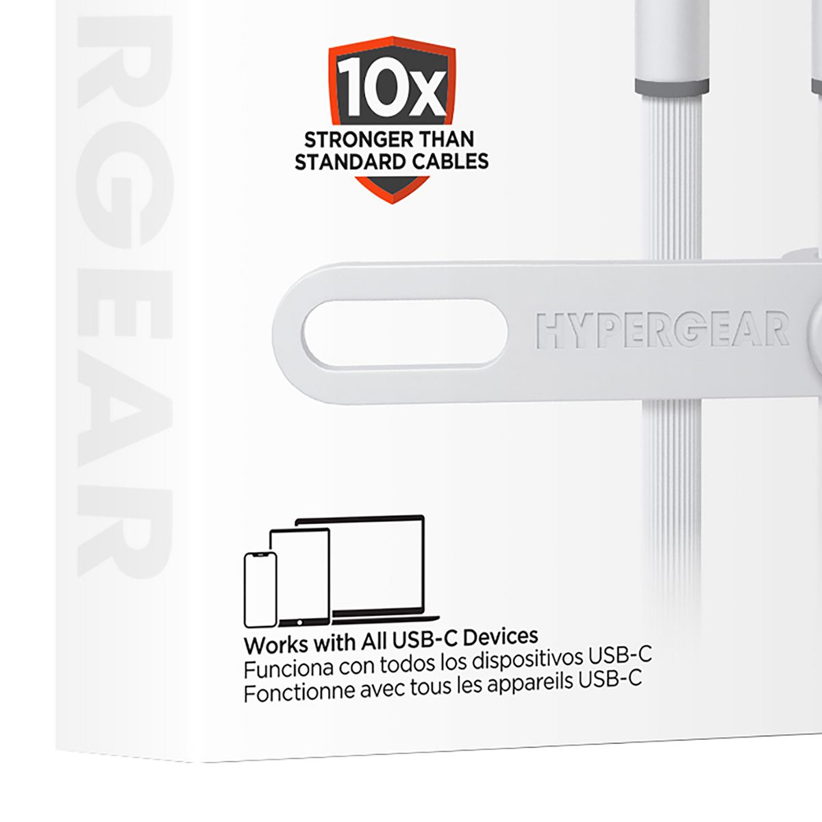 It’s time for a charging upgrade. Super-soft and super-bendy, the HyperGear® Flexi Pro Charge and Sync Cable flows where you take it and stays where you want it – no more twists, kinks, and tangles. The super-durable and tear-resistant exterior is 10x stronger than standard cables while being oh-so-soft to the touch, and it comes with a silicone cable strap for on-the-go convenience. It's universally compatible with all USB-C® devices from phones to laptops, and Power Delivery-enabled so you can super-fast charge your compatible iPhone® or Android™ phone from 0 to 50% in just 25 minutes._
