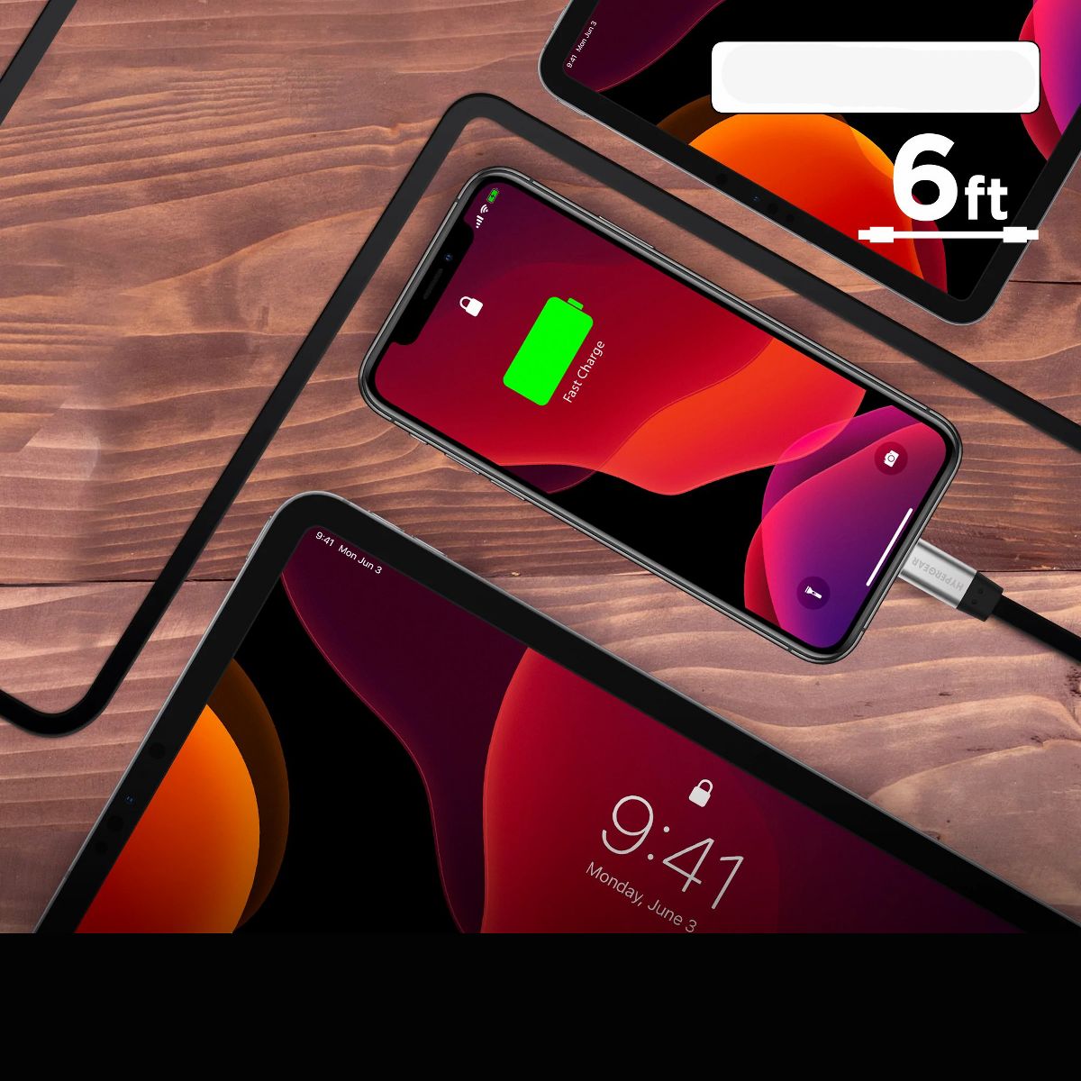Fast Charge your iPhone from 0 to 50% in just 30 minutes! Supporting up to 60W of Lightning and Power Delivery Fast Charging, this cable can seamlessly bring your iPhone, iPad, or iPod or Thunderbolt 3 (USB-C) enabled Mac and iPad Pro to a full charge quicker than ever! Finally, you can take advantage of the fast charge feature on your iPhone by using the cable with high-speed USB-C PD chargers. Featuring a tangle-free flexi design, reinforced stress points and thick gauge wiring, proven to last 20X longer than standard cables. Enhance your charging with fast speeds and flexibility! Transfers Data, Music & Pictures in Seconds 20X Stronger than Standard Cables Tangle-Free, Flat Design