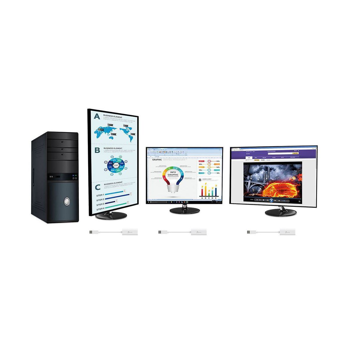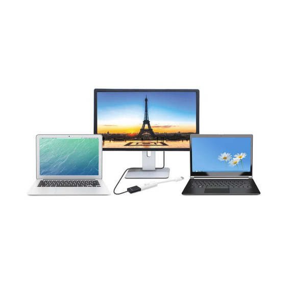 The JUA254 USB to HDMI Multi-Monitor Adapter works as an external video card, instantly allowing users to attach additional displays via HDMI connection without the hassle of a lengthy setup or having to install additional hardware. The USB 3.0 Display Adapter can support up to four displays running on the same computer, turning your workstation into a fully-functioning, multi-display powerhouse. This USB adapter works as an external video card, instantly allowing additional displays without the hassle of opening the computer casing and installing an external graphics card. You can have a second monitor with an extended display, a mirrored display, a rotational display (rotation mode not available for Mac ), or make it your primary monitor. Now enjoy true 1080p HD resolution through any Windows or Mac computer with a USB 3.0 port. These adapters are also backwards compatible with USB 2.0 resolutions and playback, which are ideal for office applications. The simple plug-and-play function allows you to connect your computer to a second monitor or projector within seconds to create a new visual environment on Windows 10.