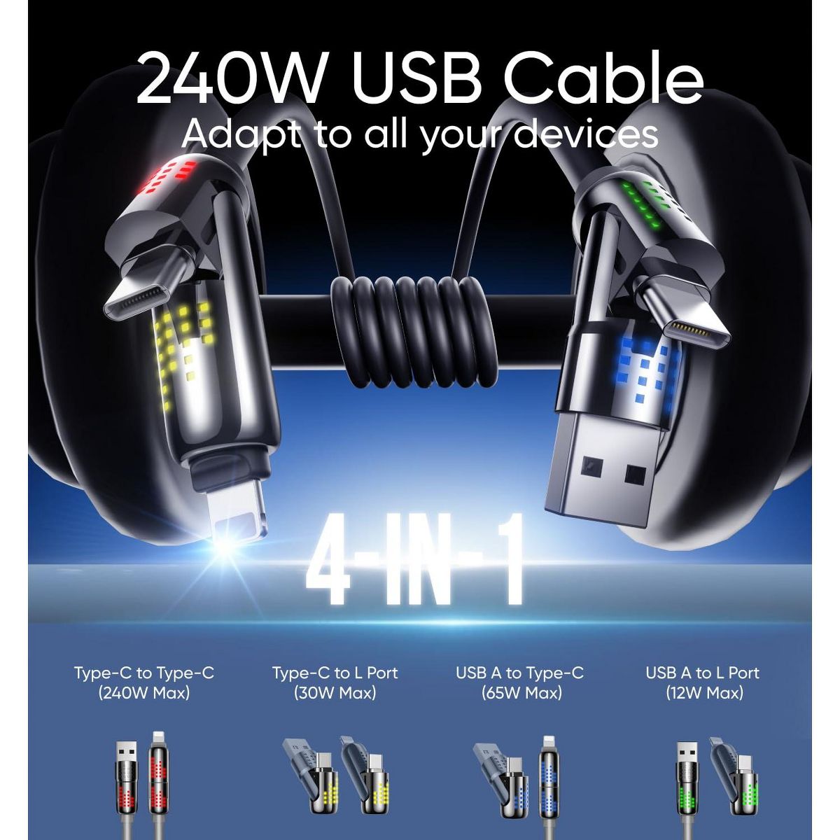 MAGIC JOHN 240W 4 in 1 Charging Cable, 4FT USB C to Lightning Cable [MFi Certified]-Black