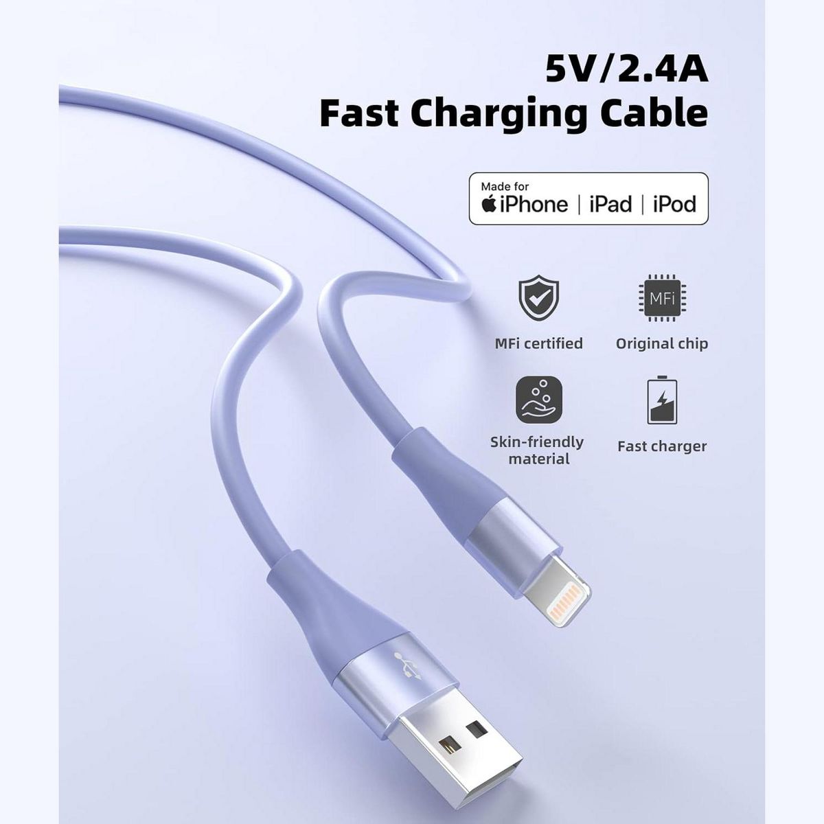 Apple MFi Certified: Crafted using original chips, our lightning cable is fully certified to support all iOS versions, including future updates. Rest assured that our cable meets stringent standards for quality, durability, and performance. Enjoy fast data transfer, syncing and charging,while also ensuring safety