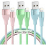 MAGIC JOHN 3Pack 10 FT Apple Cable for iPhone 14 13 12 11 Pro Max XR XS X 8 7 6 Plus SE iPad and More-Pink+Green+Blue