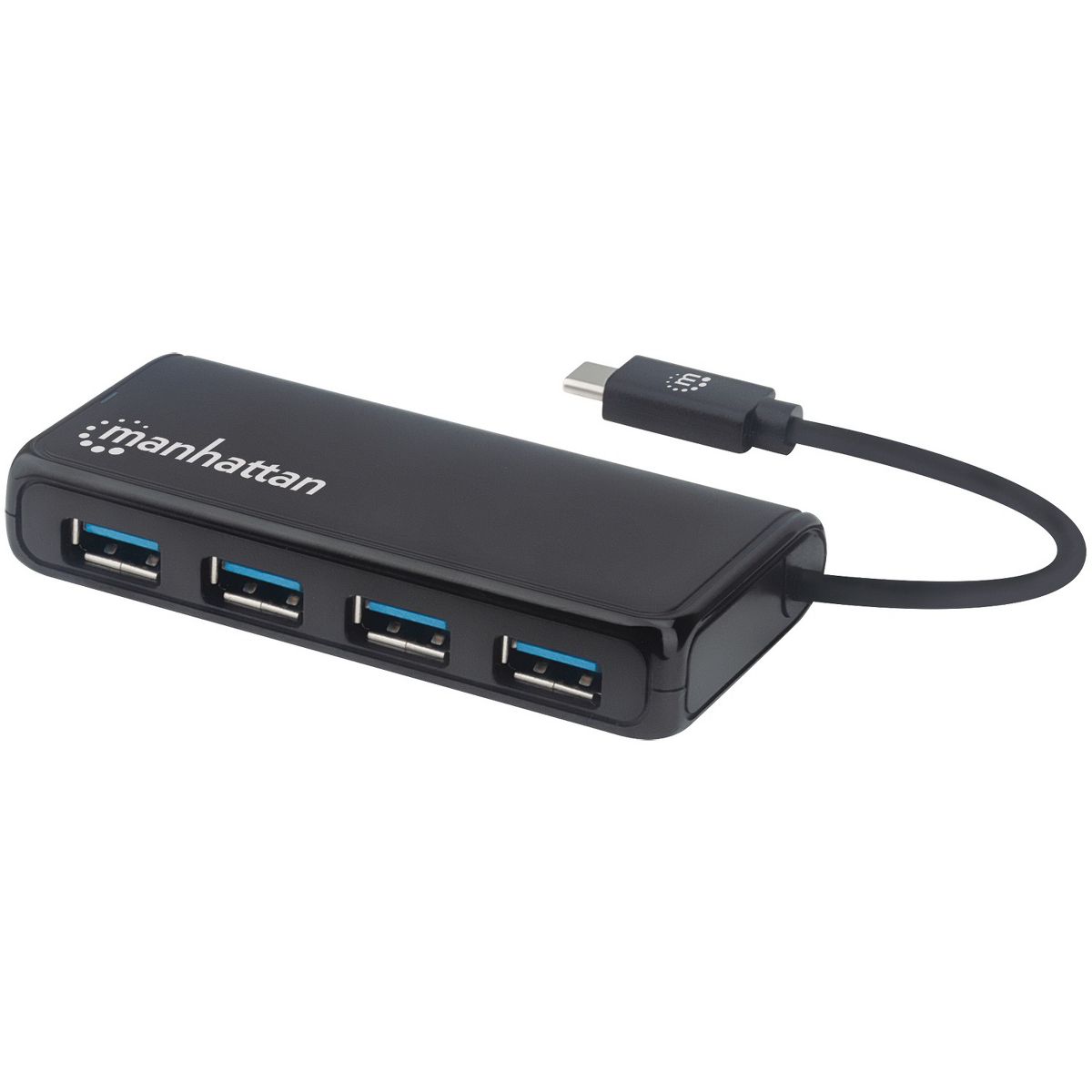 Manhattan® 4-Port USB 3.2 Gen 1 Hub with USB-C®-Male to 4 USB-A Females in Black