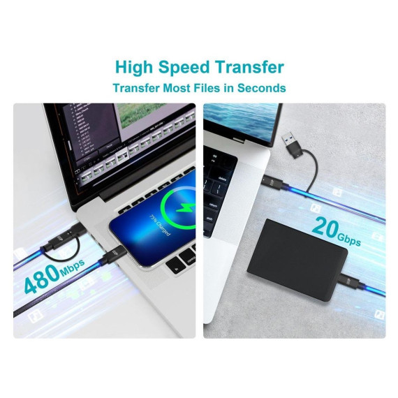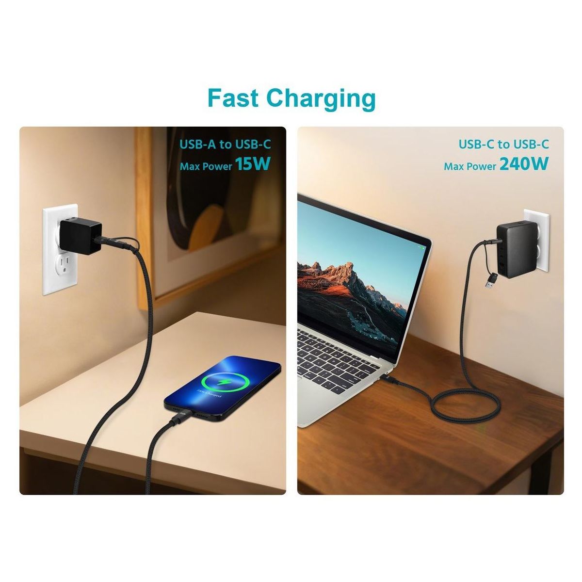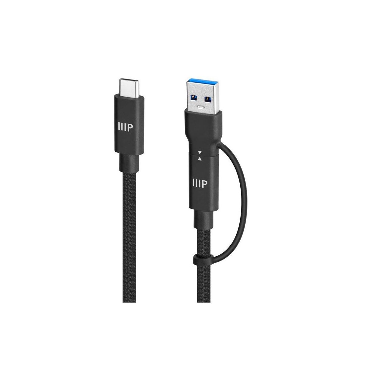 Monoprice 3ft USB4 2-in-1 USB-C Braided Cable, Ultra High-Speed, 240W EPR 4K60Hz 20Gbps - Black