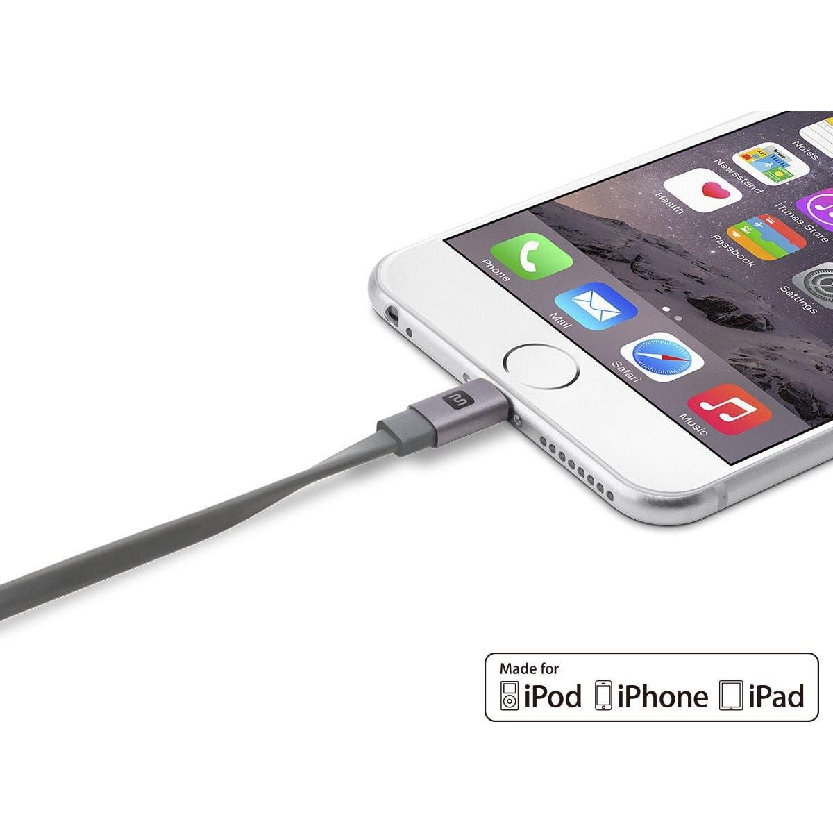 Experience the ultimate convenience in charging and syncing with the Monoprice Cabernet Series Apple MFi Certified Flat Lightning to USB Charge and Sync Cable in sleek black. This 4-foot cable ensures your Apple iPhone, iPad, or iPod stays fully charged while effortlessly syncing your cherished photos and music.