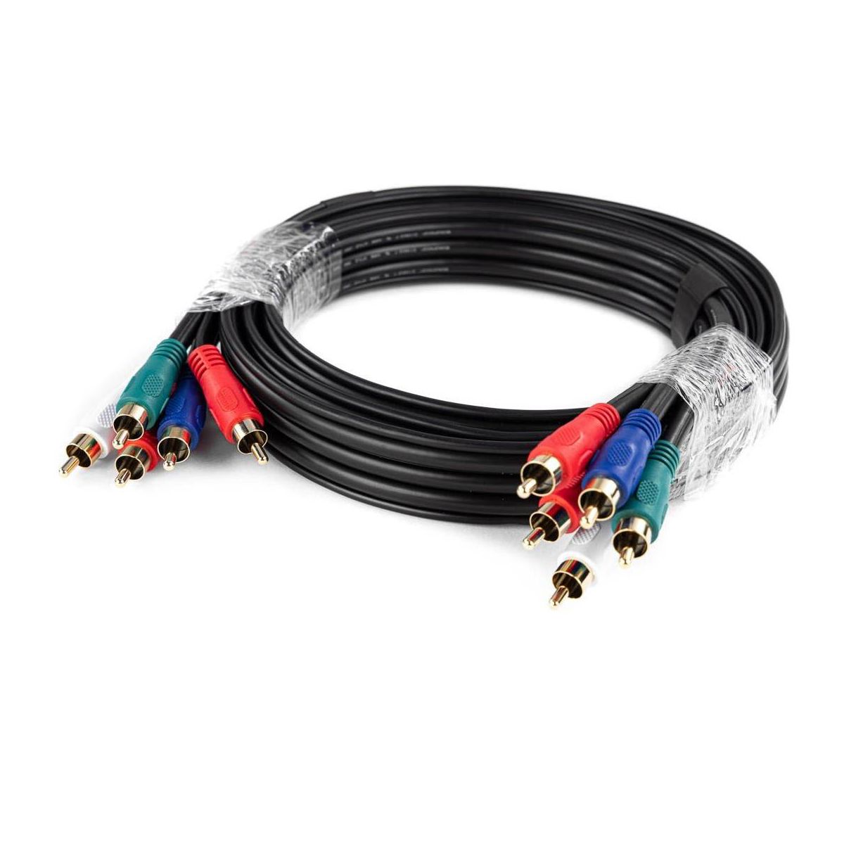 Monoprice 5-RCA Component Video/Audio Coaxial Cable - 6 Feet - Black | 22AWG, Color Coded, Gold Plated, Molded Connectors
