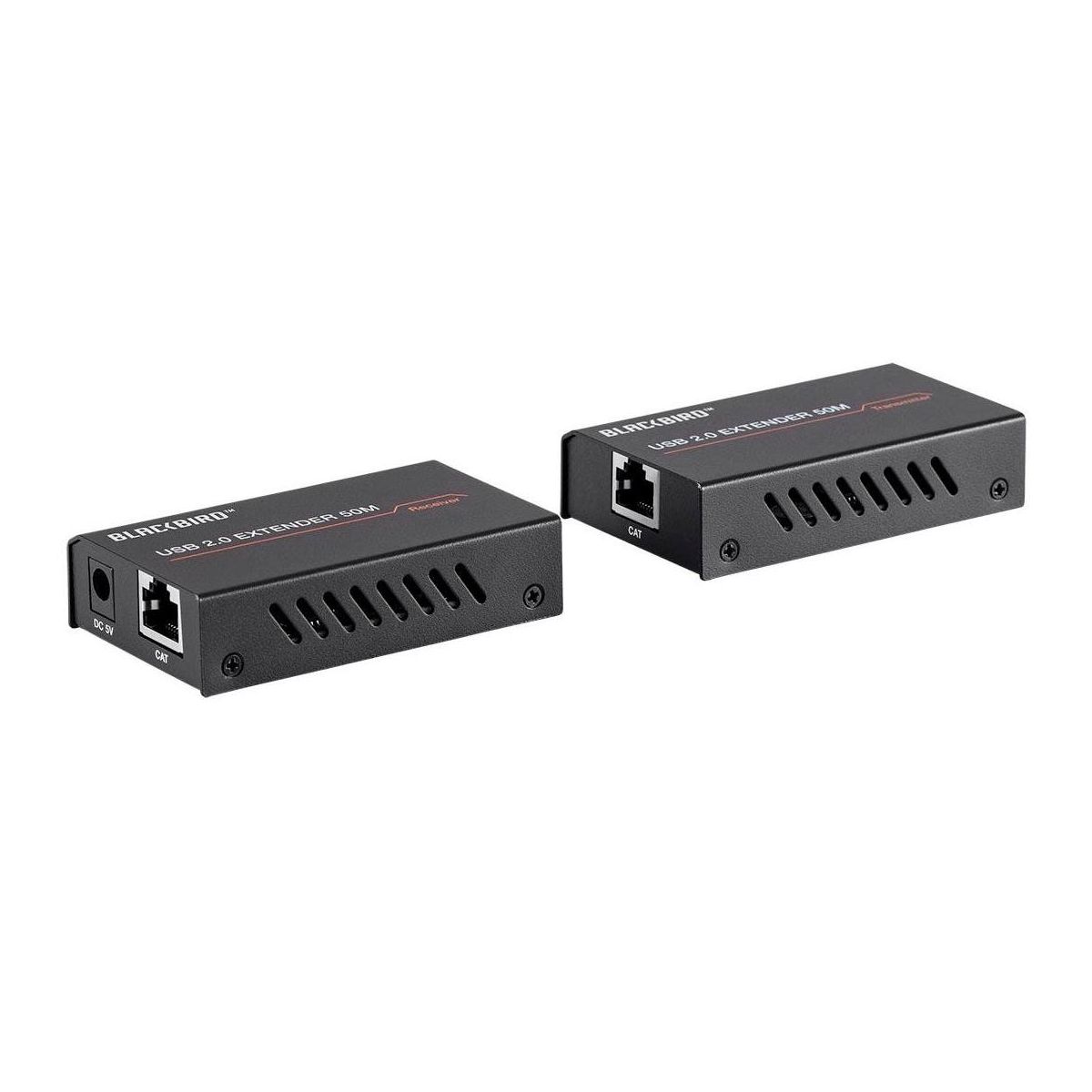 This Blackbird USB 2.0 2-Port Extender can extend USB signals to distances up to 164 feet (50 meters) over a single Cat5e/6 Ethernet cable. The transmitter receives its power from the USB connection, while a 5 VDC, 1A AC power adapter is included for use with the receiver. It supports data rates up to 480Mbps and is a true plug and play device, with no drivers or special configuration required.