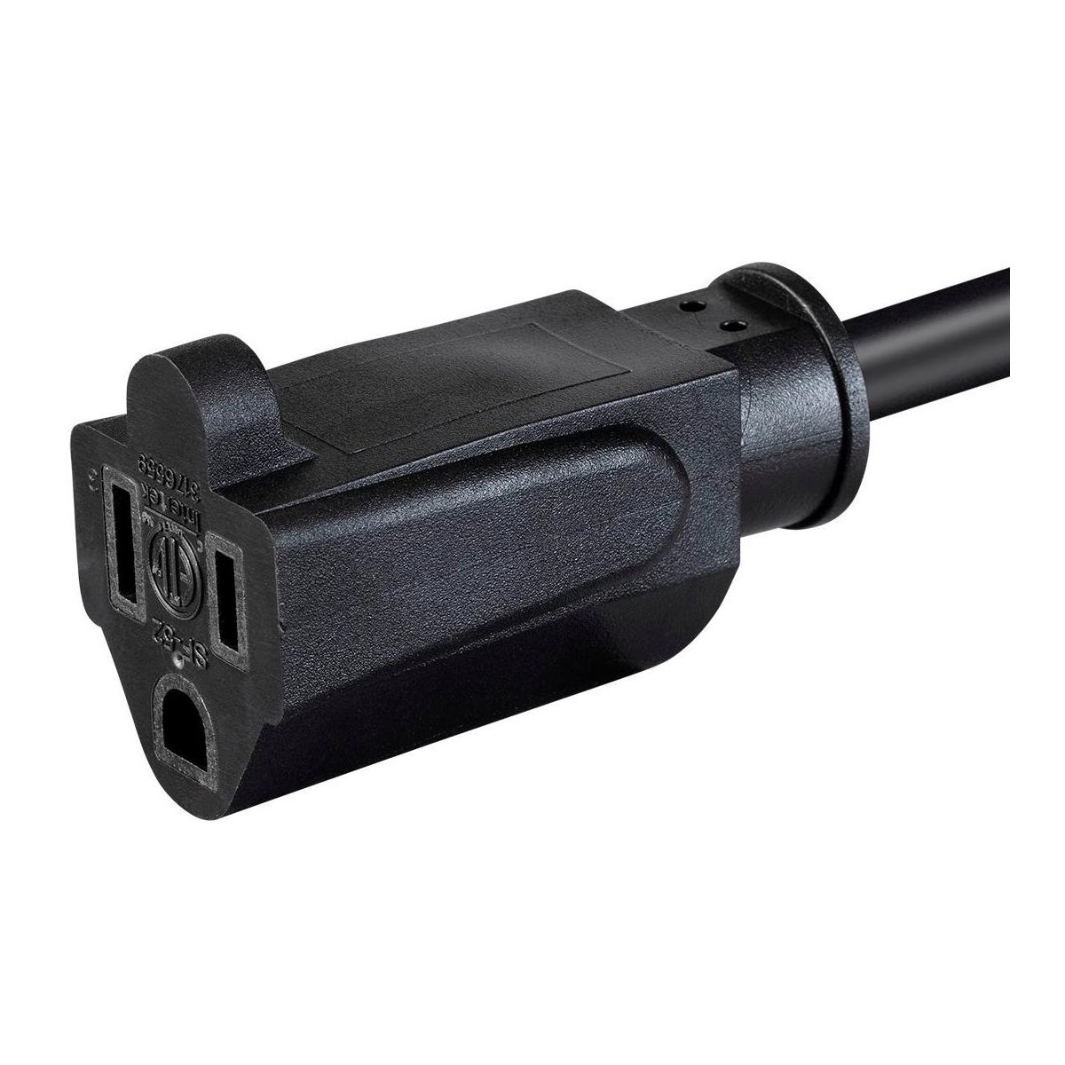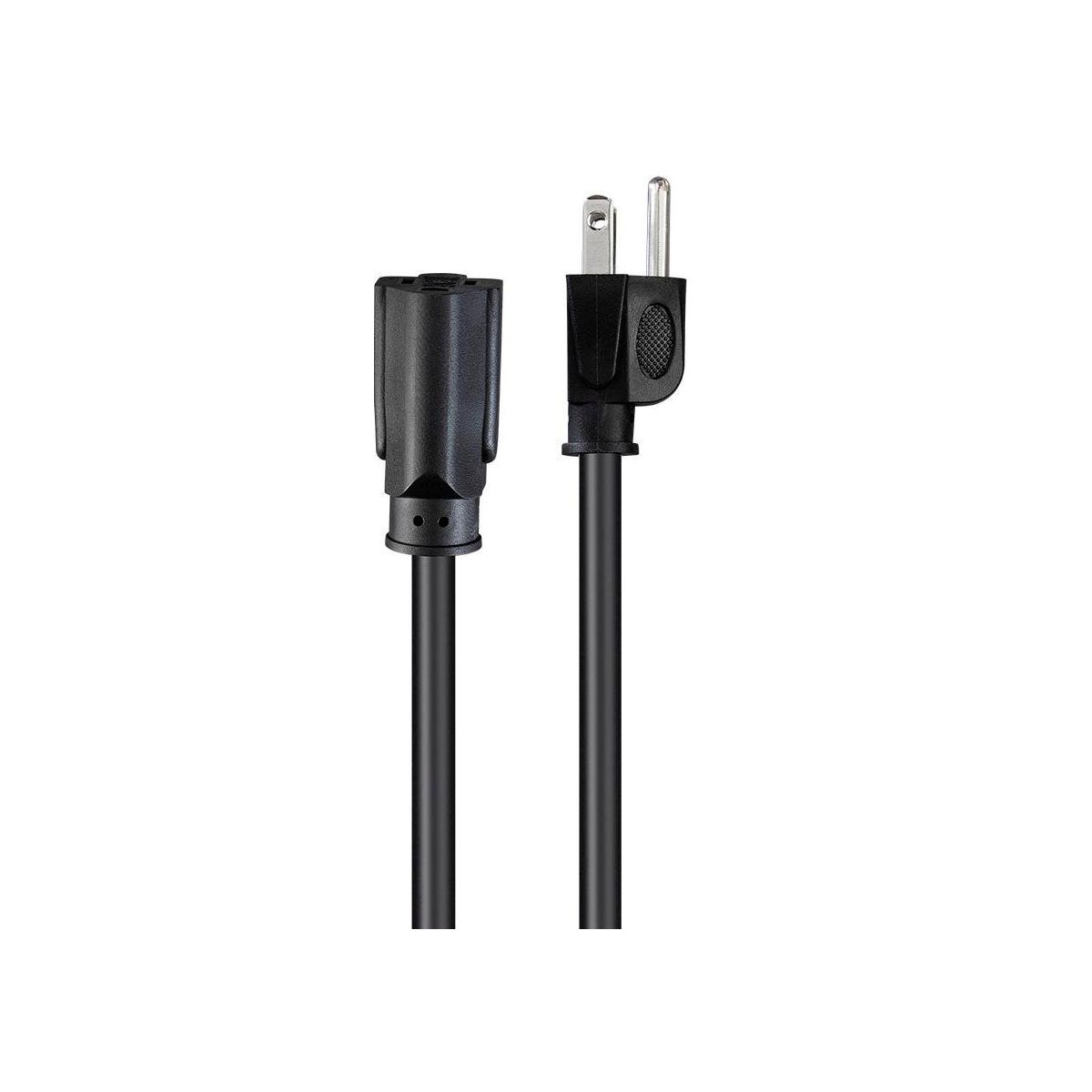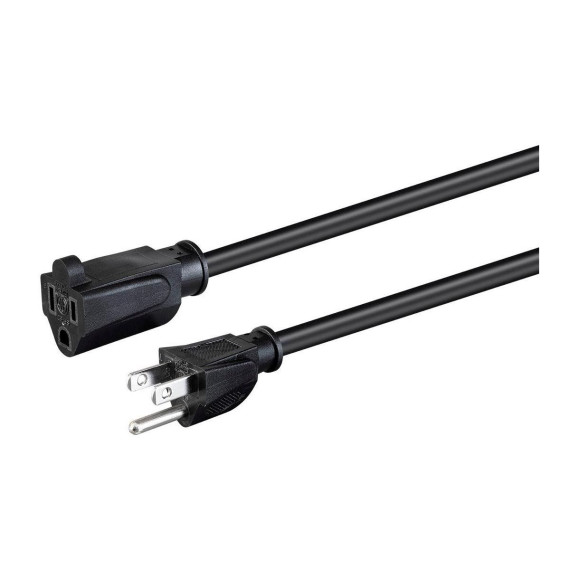 This Monoprice power extension cable is designed for office workstation applications that do not require heavy-gauge conductors. With a NEMA 5-15P plug on one end and a NEMA 5-15R receptacle on the other, this cord can be used to power a computer, printer, or monitor, attach a rack server to a UPS system or PDU, or extend an existing connection.