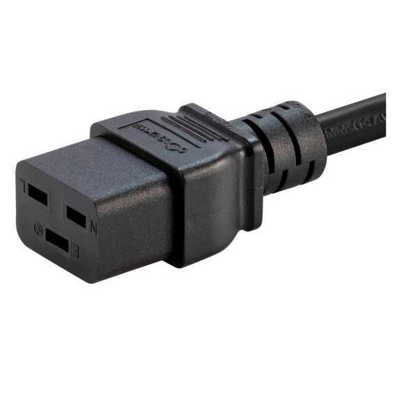 Connect your network device with a male IEC 60320 C20 panel connector to a UPS or other AC power source. This power cord features a standard, grounded NEMA 6-20P plug on one end and an IEC 60320 C19 connector on the other end. Simply mate the female C19 connector with the male C20 connector on your device or power adapter, then plug the NEMA connector into a nearby UPS or other AC power source.
