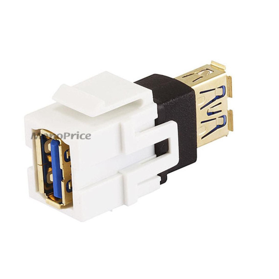Monoprice Keystone Jack - USB 3.0 A Female to A Female Coupler Adapter - White | Flush Type
