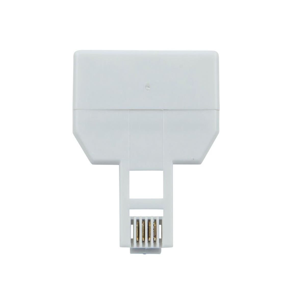 Phone Jack Splitter.For plugging two telecommunications device via RJ11 to a single jack.4 conductor type.White.*Monoprice continually strives to improve its product line to bring our customers the best products available. Therefore, changes may be made to listed specifications without prior notice. Item received may not match photo or specs shown.
