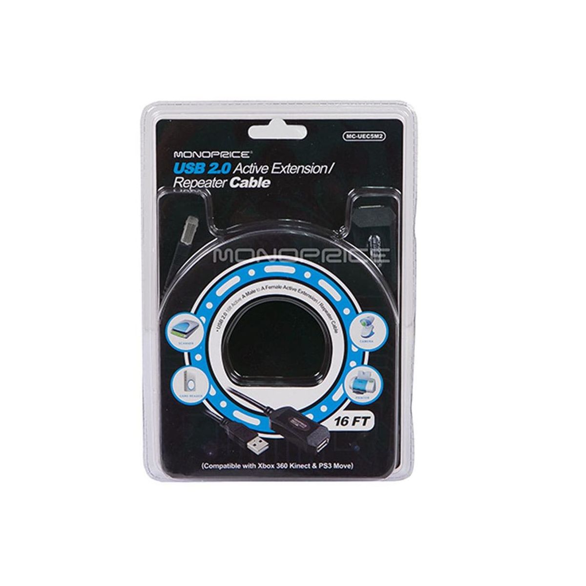 Monoprice USB 2.0 Extension Cable - 16 Feet - Black | USB Type-A Male to Type-A Female, Active, 20/28AWG, Repeater, Kinect & PS3 Move Compatible