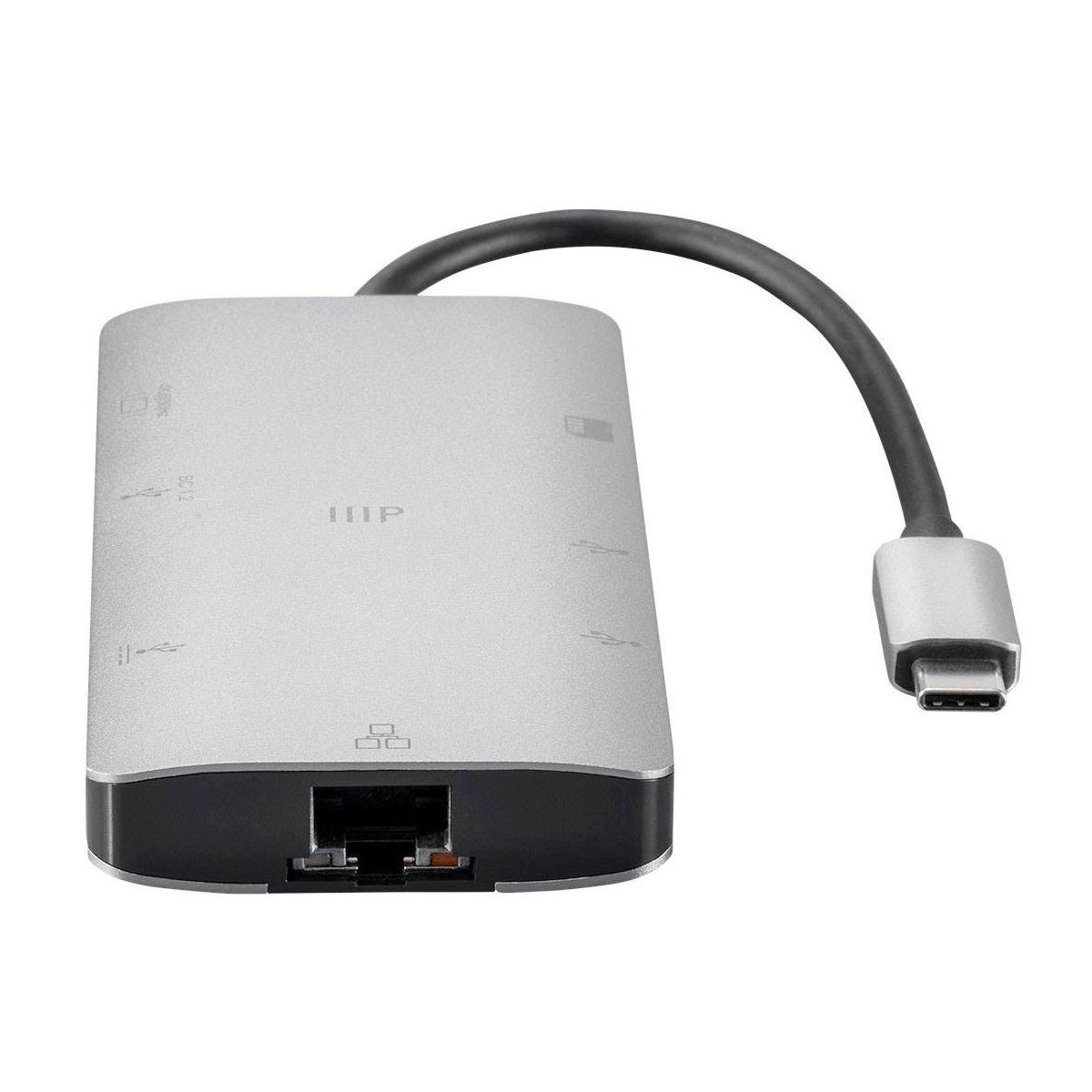 Monoprice USB-C To HDMI Adapter - Aluminum Body With Gigabit Ethernet, 3-Port USB 3.0, SD/MicroSD Reader, USB-C 100W, Power Delivery 3.0 Ports