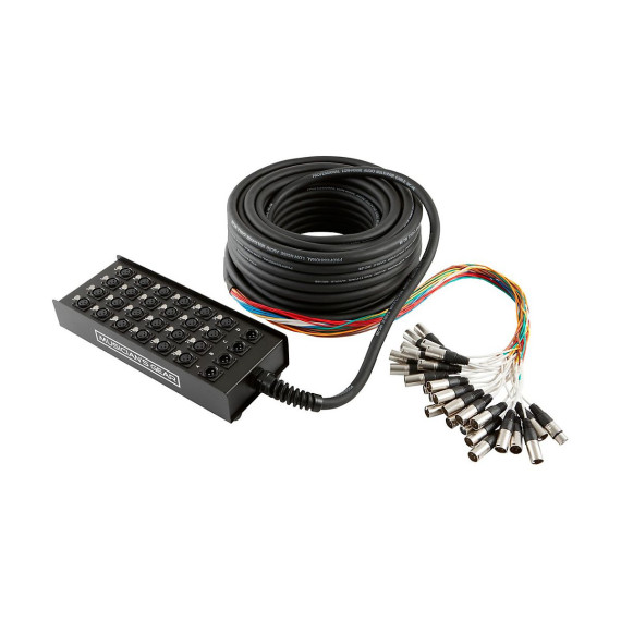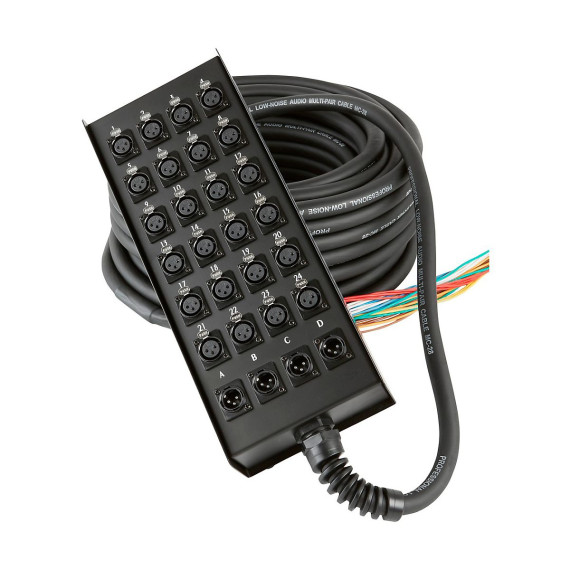 The Stage Snake is an affordable, high-quality snake that provides 24 channels of balanced analog audio in a durable, road-ready package. With 8 different length options (8', 12', 16', 24', 50' and 100'), and 4 alphabetically coded returns, this snake is ideal for both live sound setups or permanent installations. Each input is clearly labeled and color-coded for fast, intuitive setups.