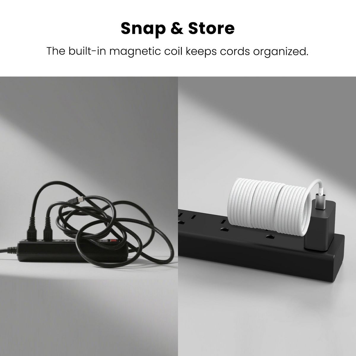 Power that clicks into place. The MyBat Pro MagCoil USB-C to USB-C Braided Magnetic Cable is designed with an integrated magnetic cable wrap that keeps cords tangle-free, secure, and always within reach. Designed for high-speed charging and rapid syncing, this 6FT cable supports Power Delivery and data transfer up to 480Mbps. With Smart Chip Technology for safe, optimized charging across devices and a braided exterior that resists wear and tear, it's made to handle everything from everyday power-ups to long-haul connections. Plug in, power up, and stay organized, without the mess.