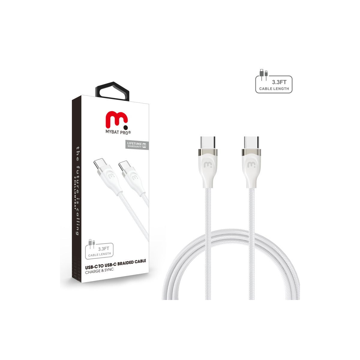 MyBat Pro USB-C to USB-C Braided Cable (L=3 FT) - White White