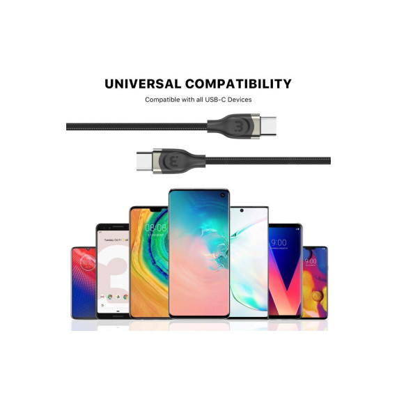 Upgrade your customers' everyday cables with a USB-C to USB-C Braided Quick Charging Cable from MyBat Pro provides the fastest charging speeds and data transfer rates to their Android phones, tablets, earbuds, etc. It is available in attractive packaging that makes it stand out on the shelf and shows off the product beautifully, making it an ideal addition to your inventory.