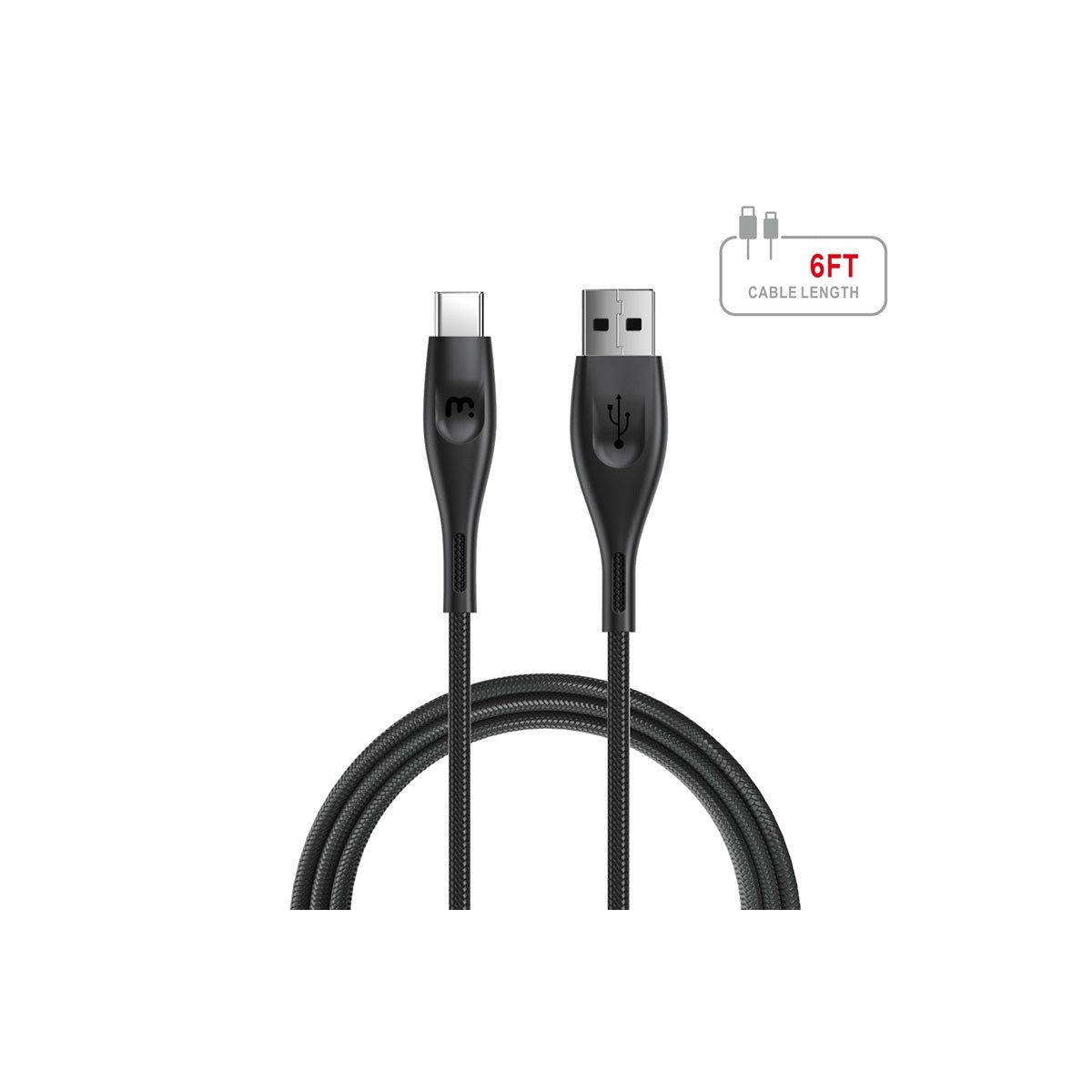 The MyBat Pro USB-C to USB-A Cable provides the fastest charging and data transfer rates for your customer’s devices! ! Their devices can charge fast at speeds of up to 3A, and they can transfer large files at speeds of up to 480Mbps when connected to a computer. This means they can quickly transfer large files like photos and videos in seconds! Crafted from durable and flexible braided nylon, the USB-C to USB-A Cable boasts an incredible bend lifespan that outlasts the average charging cable. Your customers will get maximum freedom and mobility as they charge with the perfect 6ft/1.8m length that easily reaches from a wall outlet to a couch or bed and easily runs from a center console to a passenger.