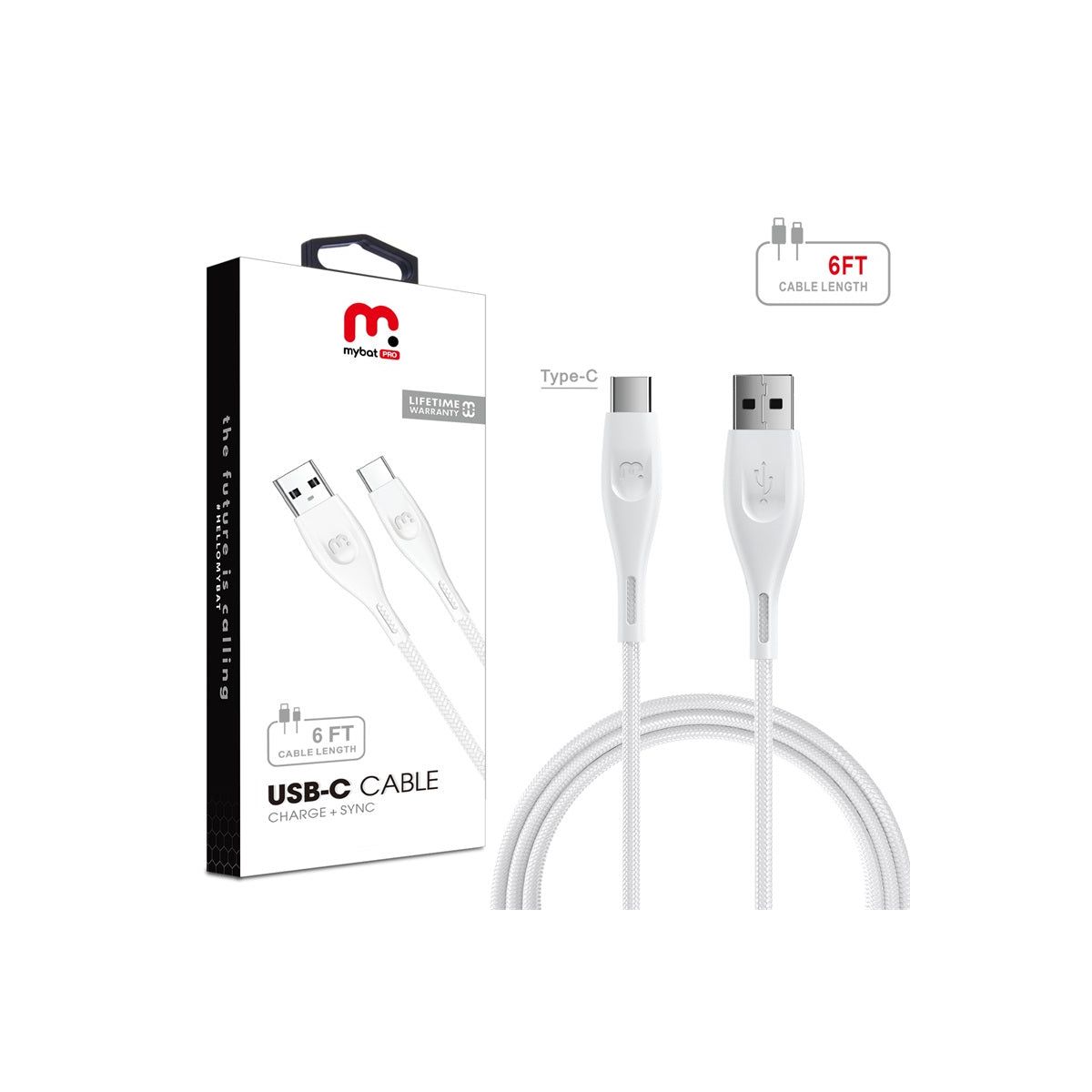 MyBat Pro USB Type-C Data Cable 6 FT - White/Black White
